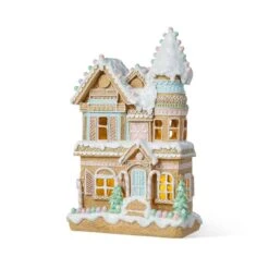 This unique double-layered Christmas Macaron Resin Village Table Decor showcases a beautiful snowy scene with classic Christmas icons, adding whimsical charm to your holiday display. Featuring built-in LED lights, the enchanting tabletop piece brings warmth and festive cheer to any space. Its distinctive gingerbread house design makes it a standout decorative accent for the season.