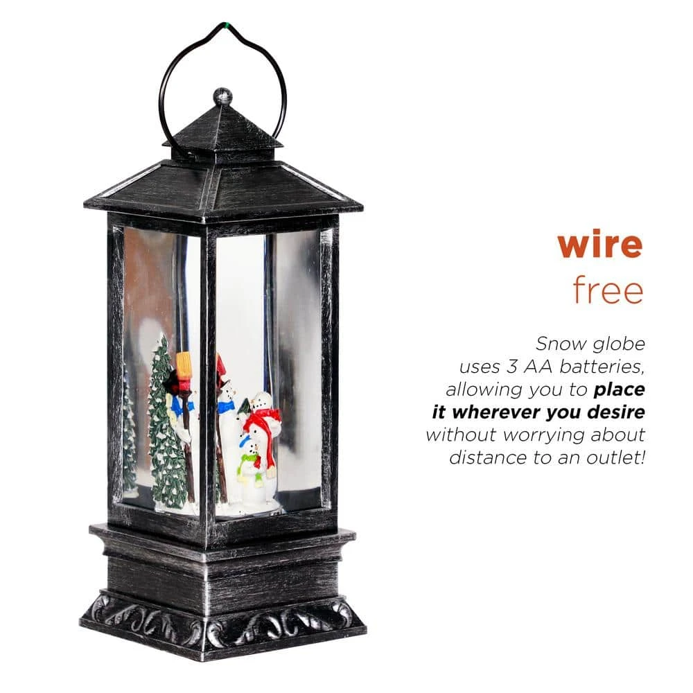 - 11 in. H lantern snowman snow globe: vintage lantern design decoration features a snow globe with a snowman family to add festive cheer to your holiday decor