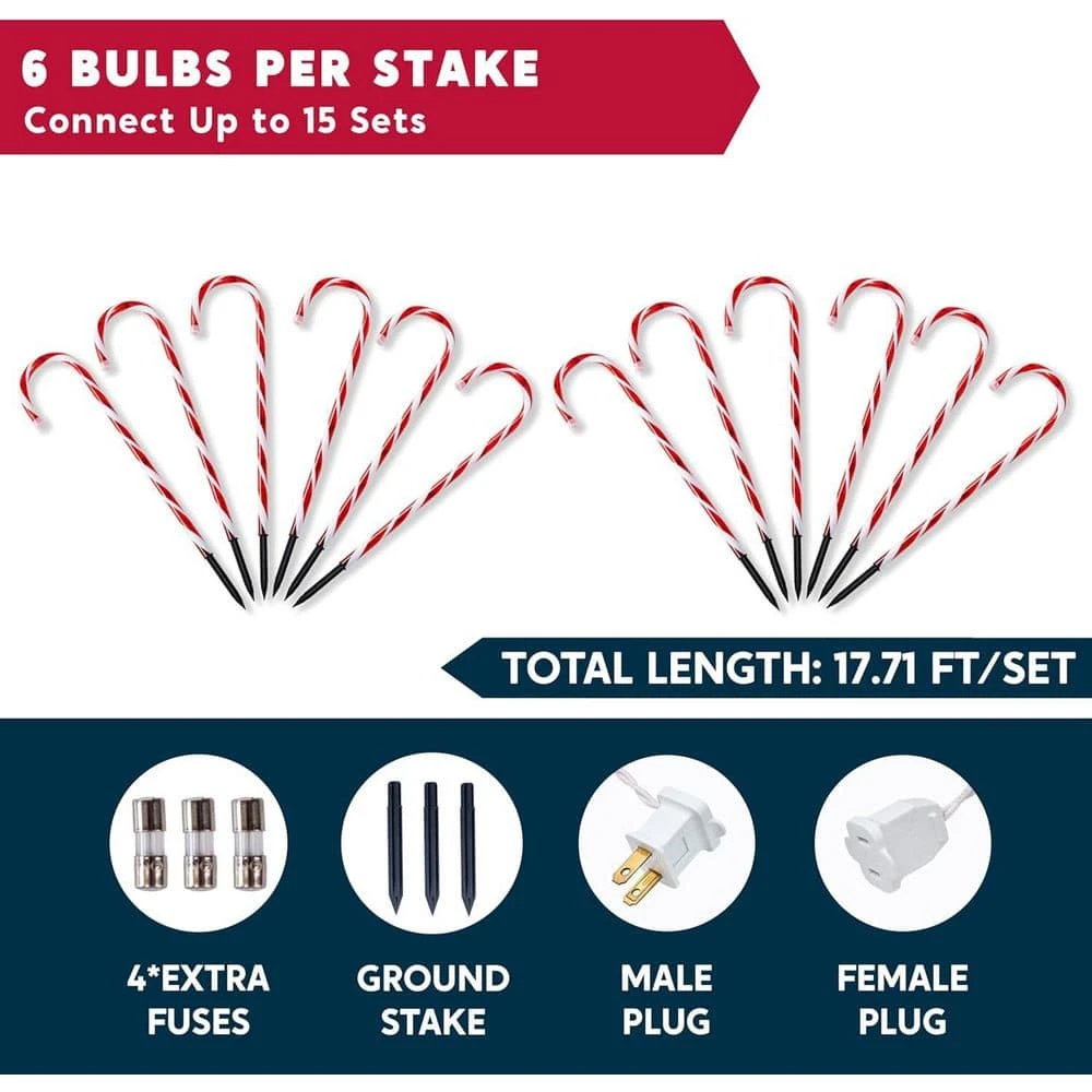Illuminate your pathway with the 12 piece Christmas Candy Cane Pathway Markers Lights by Joyfy. These candy cane lights feature a 12 in. design, perfect for outdoor Christmas decorations. Their vibrant colors and durable construction make them ideal for candy cane lane Christmas lights or holiday decorations. Easy to set up, these candy cane pathway lights add a festive touch to your holiday decor.