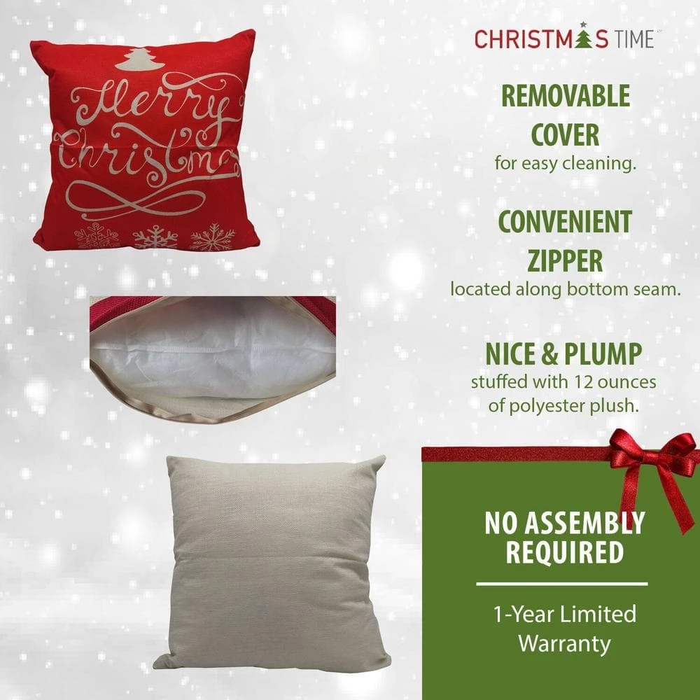 Welcome the winter holidays with a Merry Christmas accent pillow from Christmas Time. Our red and white throw pillow will help you spread some holiday cheer anywhere in your home – living room, bedroom, family room – wherever makes you happy. The perfect addition to your indoor Christmas display, toss it on the couch for a festive touch. This soft, comfy pillow is the perfect size to provide extra comfort to your sofa, chair, loveseat, or bed, making your wintertime decor complete. Lined and stuffed with 12 oz. of polyester plush, it features a convenient zipper located along the bottom seam to help remove the cover for cleaning. For unique ideas to celebrate the magic of the holiday season, count on quality decorations from Christmas Time.