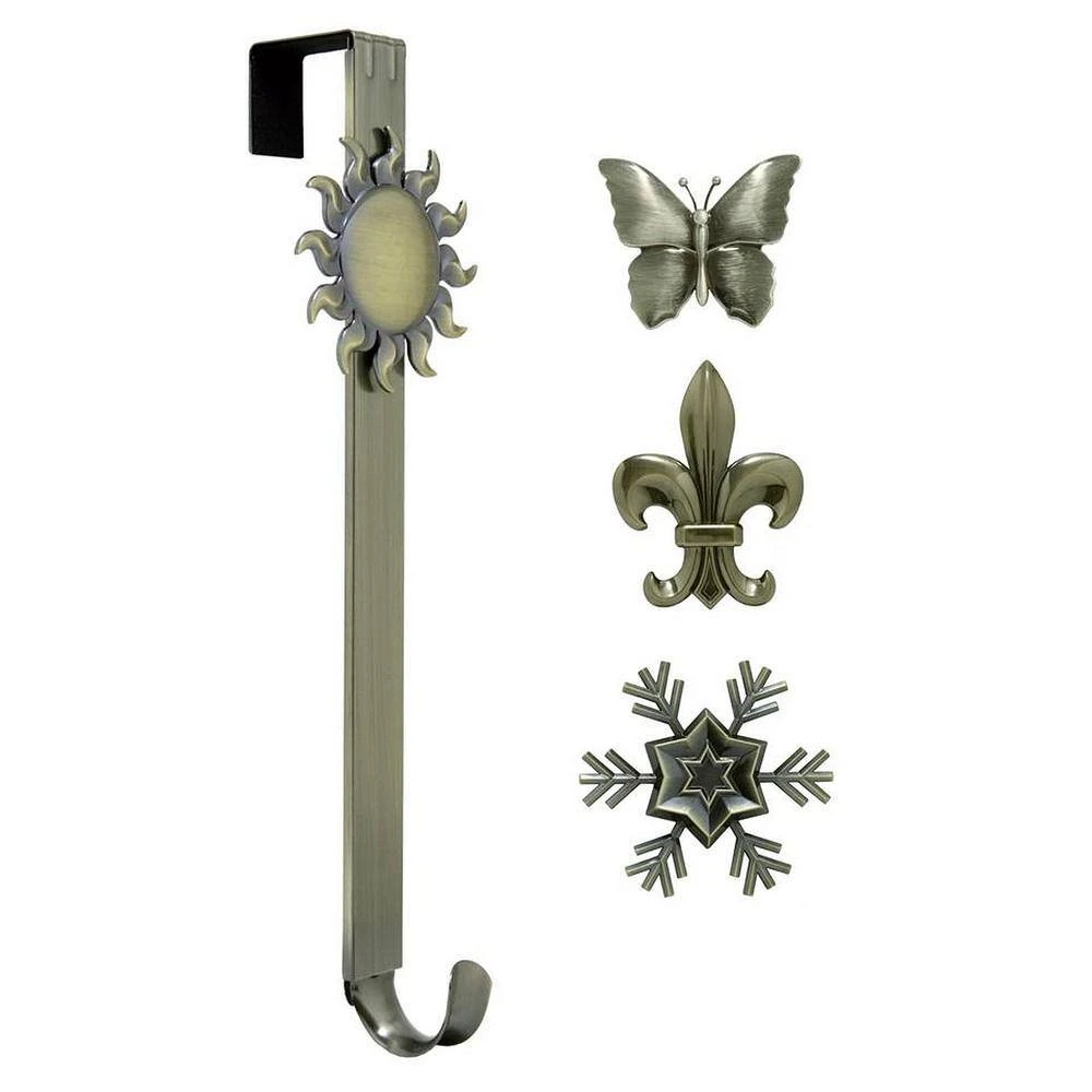 - No installation required, just slide the hook over your door and snap on an icon that fits the season and voila, it’s ready to hold a wreath