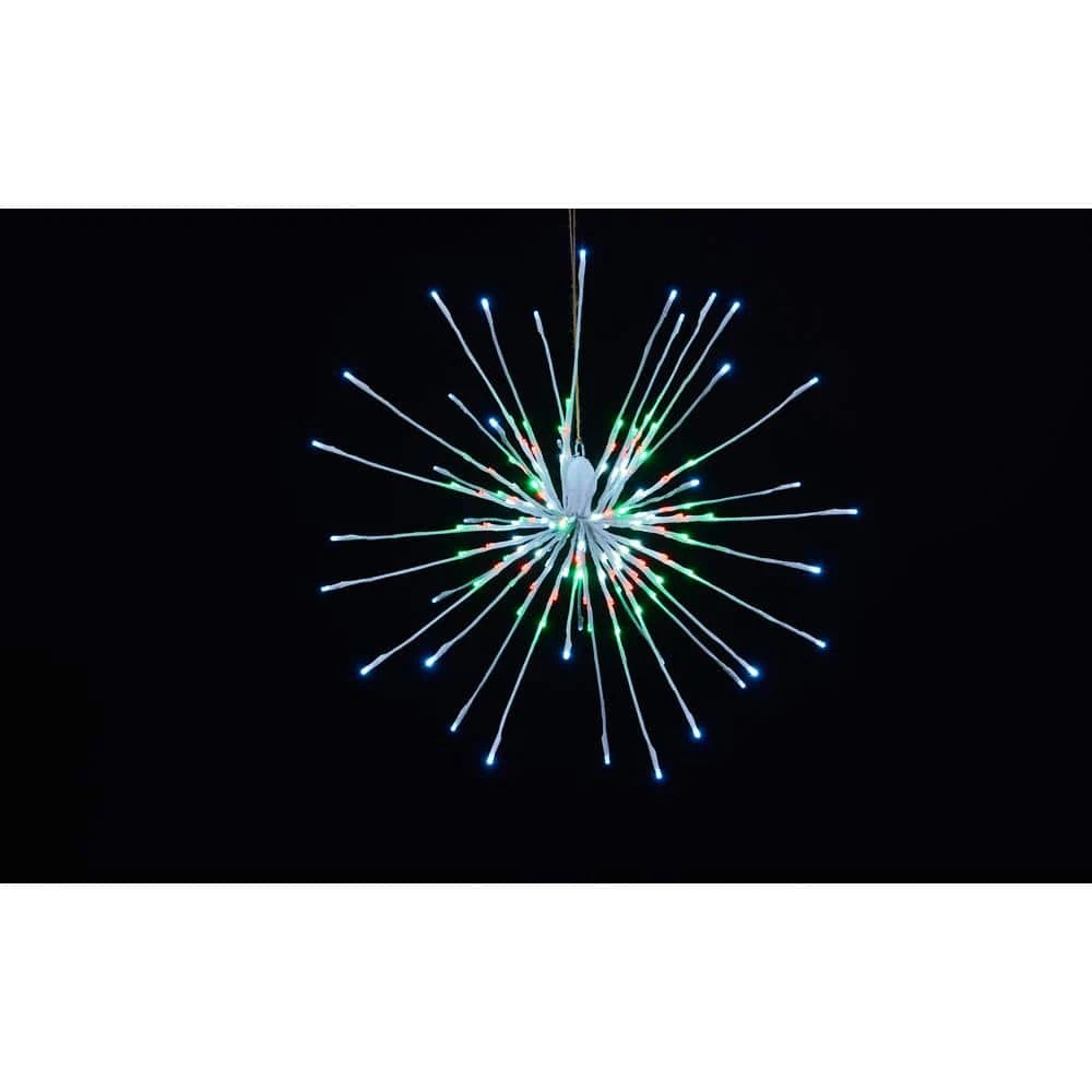 Static center with twinkling points. Self forming to be up to 24 in. W. Can be hung with provided hook or staked into ground (stake sold separately).
