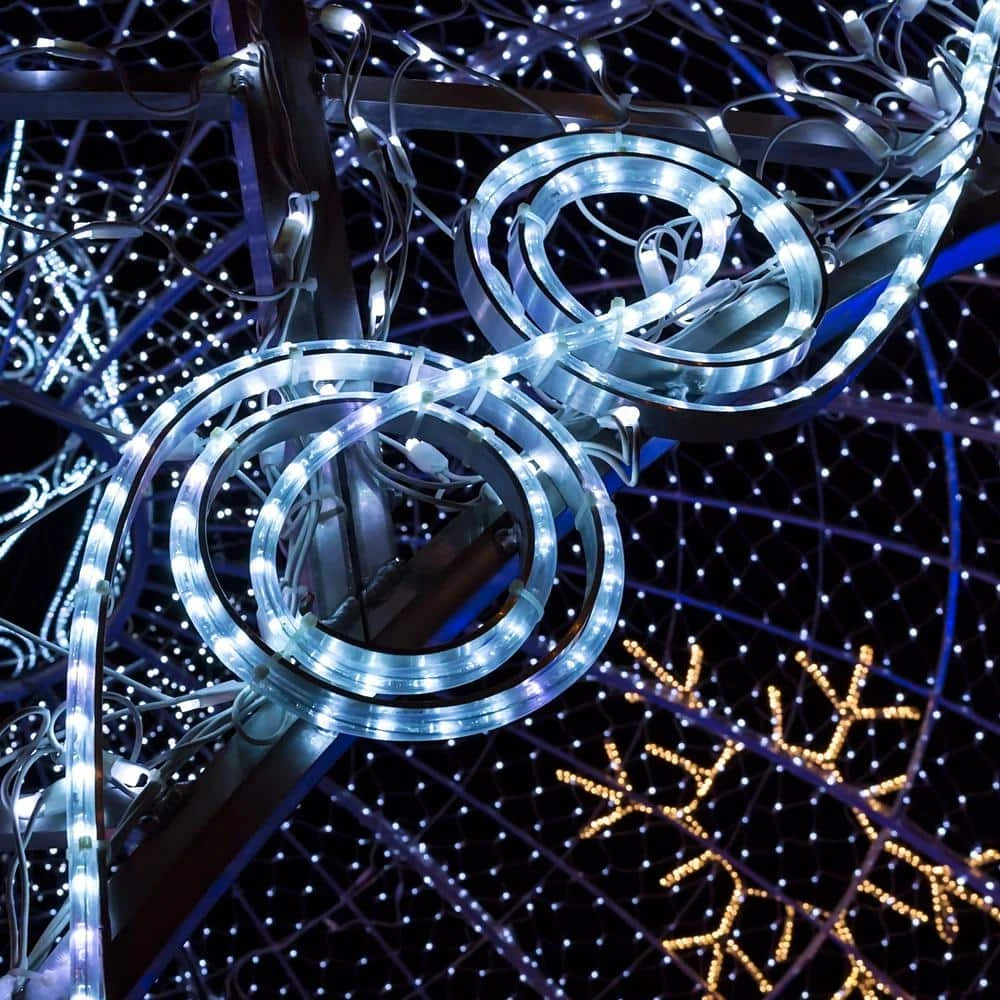 - 120-Volt 2-wire round LED rope light is popular for all kinds of general and holiday lighting uses
