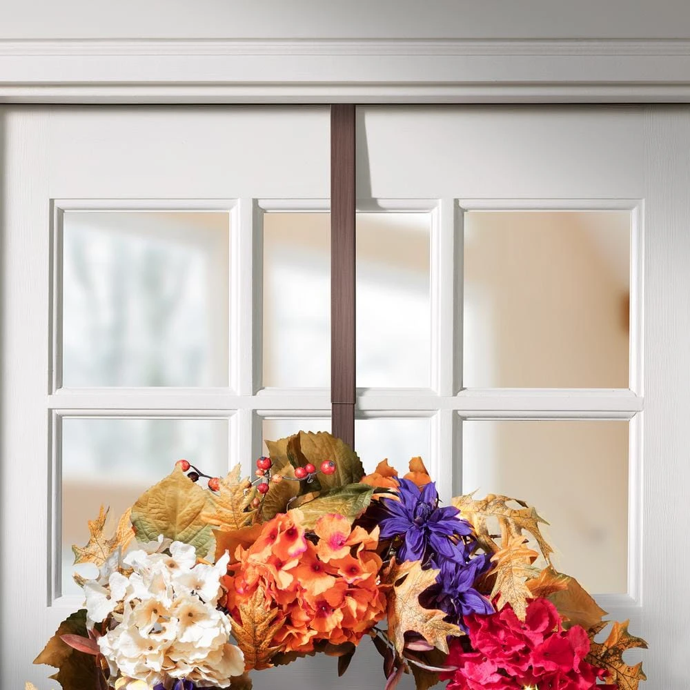 - Soft pads on the back of our adjustable wreath hanger protect it from scratching your door