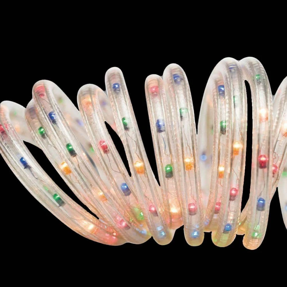 Add a modern, sleek design to your holiday decorating with this Multi-Color 18 ft. Mini Rope Light. The rope measures 18 ft. long and can be used for interior design around mantles, doors and windows. Or, wrap the rope light around trees, patios or columns to create a festive, colorful glow outside.