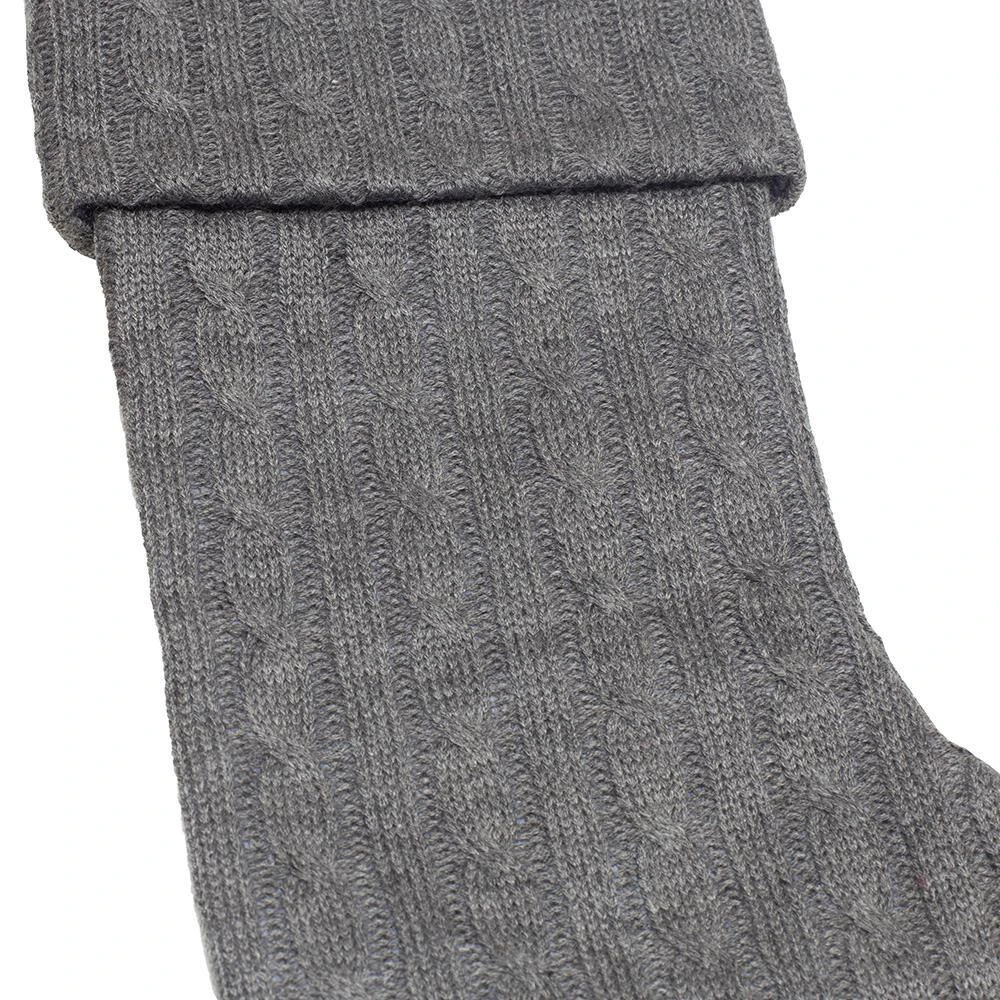 - Stocking and cuff are fashioned from a soft cable knit, reminiscent of warm winter sweaters