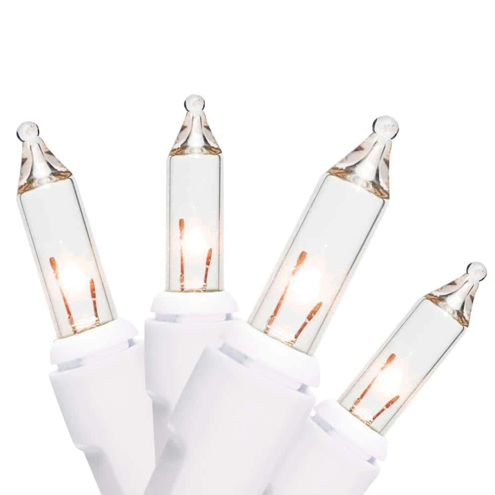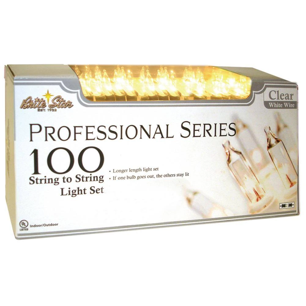 These set of 2 – 100 light professional series white wire is a wonderful light set. Light up your home throughout the holiday season and be the envy of your neighbors. The beautiful clear colored mini bulbs on white wire create a delicate effect. Each strand is 21 ft. long, including a 12 in. lead cord, 2.5 in. spacing between bulbs and a 3 in. end cord. Perfect for indoor/outdoor.