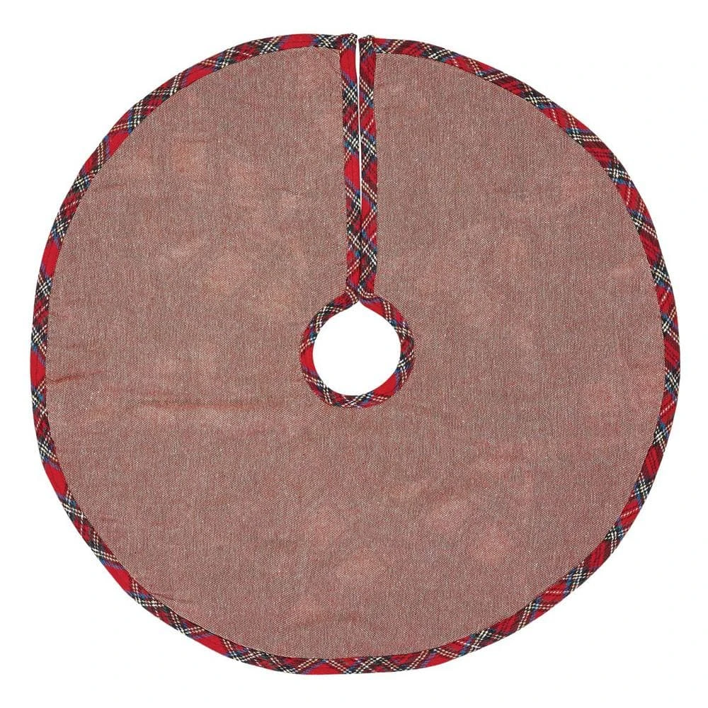 Peyton is a lesson in having fun with traditional upstate lodge decor. With a crazy patch layout in classic cotton plaids, the Peyton Mini Tree Skirt is sure to be a part of your Christmas tradition for years to come. Trimmed in red and ivory braided rope. Reverses to red and ivory chambray.