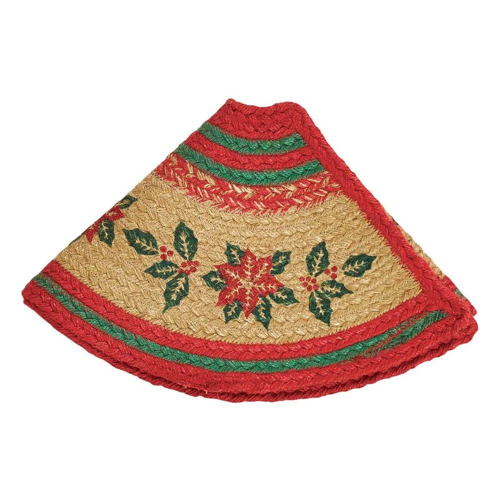 Nothing says Christmas like the beautiful poinsettia. Traditional poinsettias and holly berries are stenciled in holly berry red and forest green on natural braided jute. This item was made with care to decorate your home for many years.