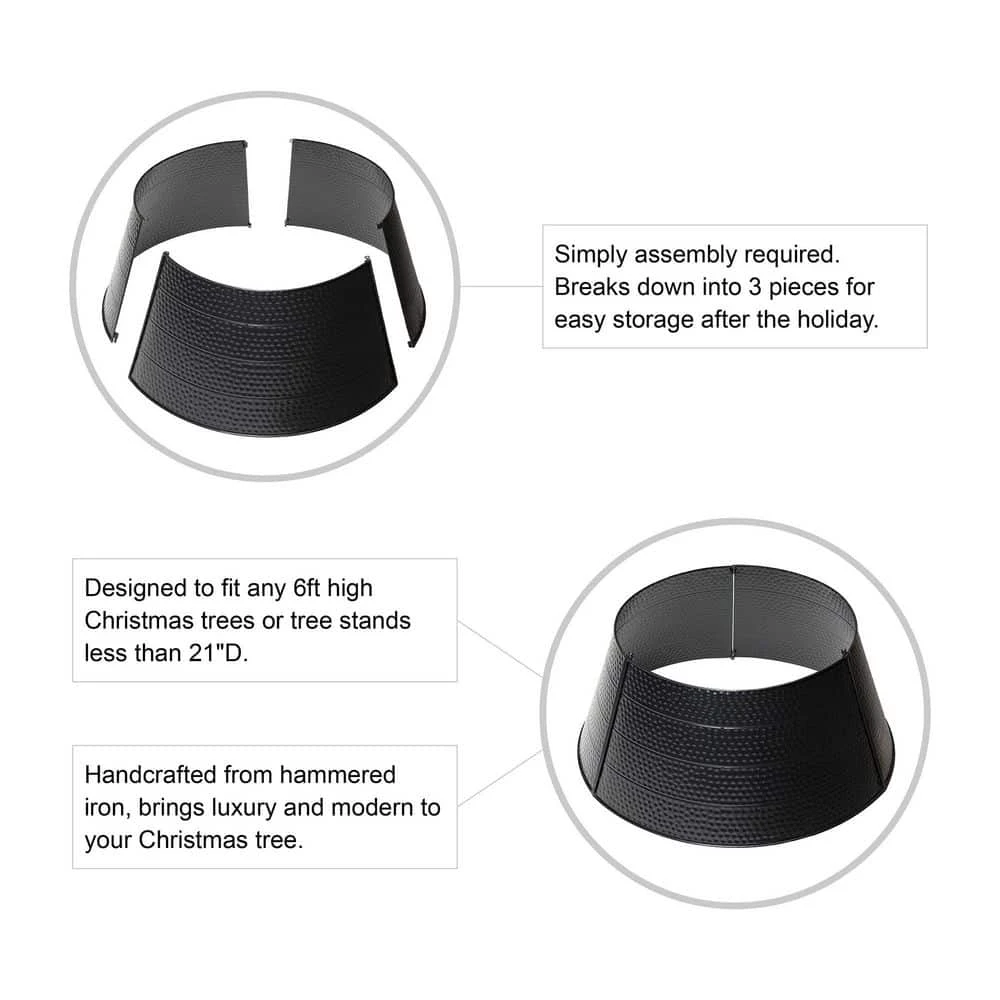 Add the final touch to your modern Christmas with this black hammered tree collar. It slightly flares out toward the base, which creates simple framing and covers the trees stand. Made from sturdy metal, you can use this collar for seasons to come.