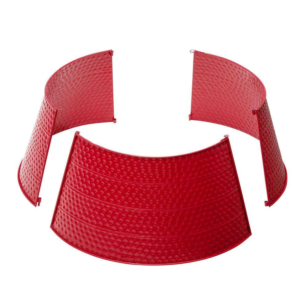 Add the final touch to your modern Christmas with this red hammered tree collar. It slightly flares out toward the base, which creates simple framing and covers the trees stand. Made from sturdy metal, you can use this collar for seasons to come.