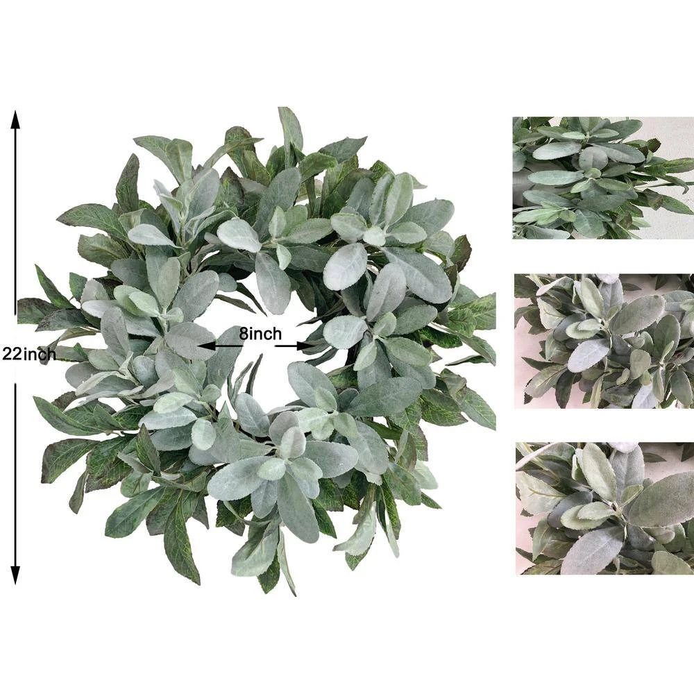 The faux greenery wreath decorated with flocked lambs ears,based on grapevine , creating a natural appearance, add a cozy glow to your seasonal decorations. The charming decor reinvent your house into a hip, shabby chic space.This ornament is durable and unique in design, it will last a long time without special maintenance, suitable for all seasons.