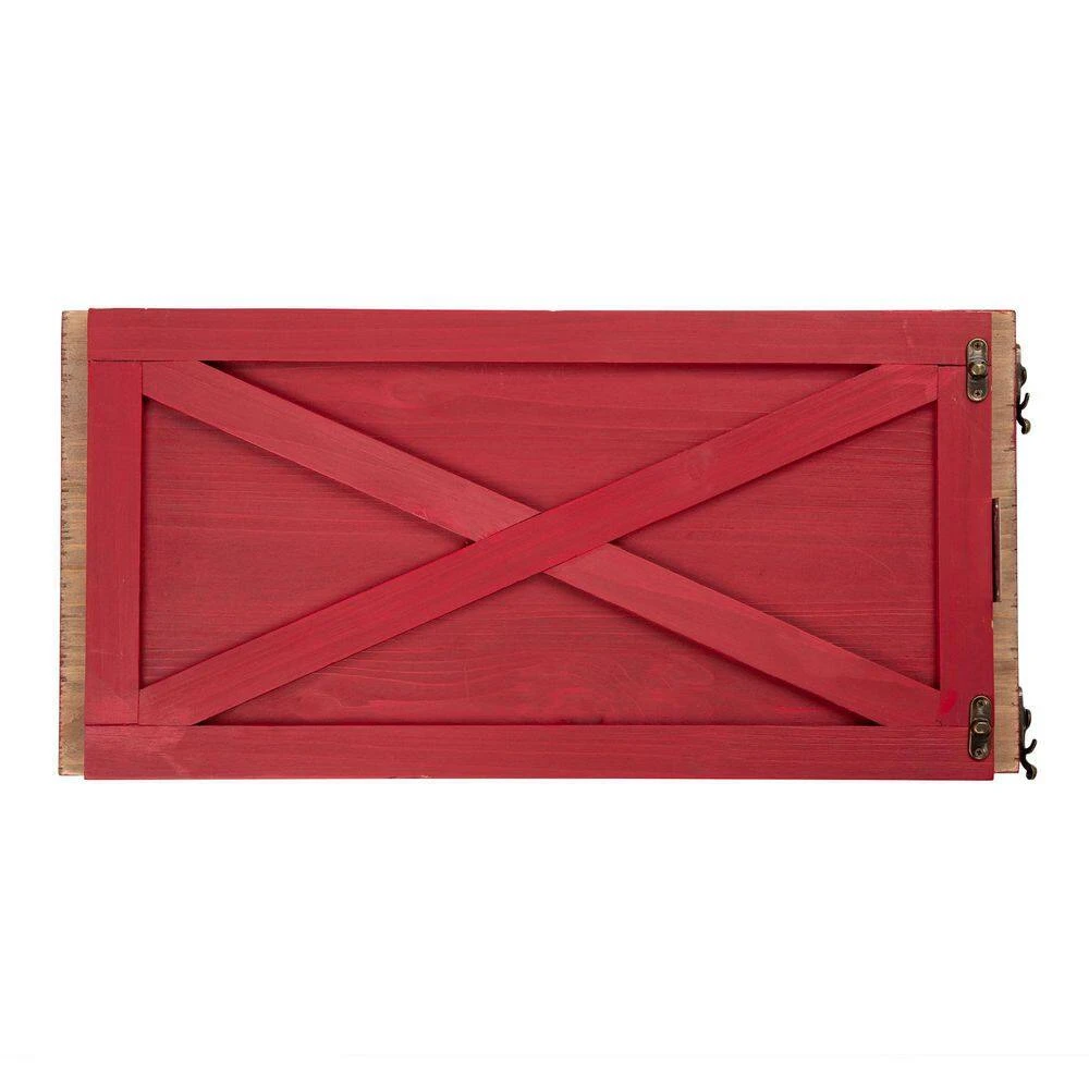 Our handcrafted tree box collars add a rustic, elegant charm to any home or business. The tree boxes not only add beauty and hide the undesirable parts of your tree, but they also prevent kids and pets from getting into the bottom side of your tree. They are stained in red finish. There are 4 panels and each panel has a locking bracket on them.