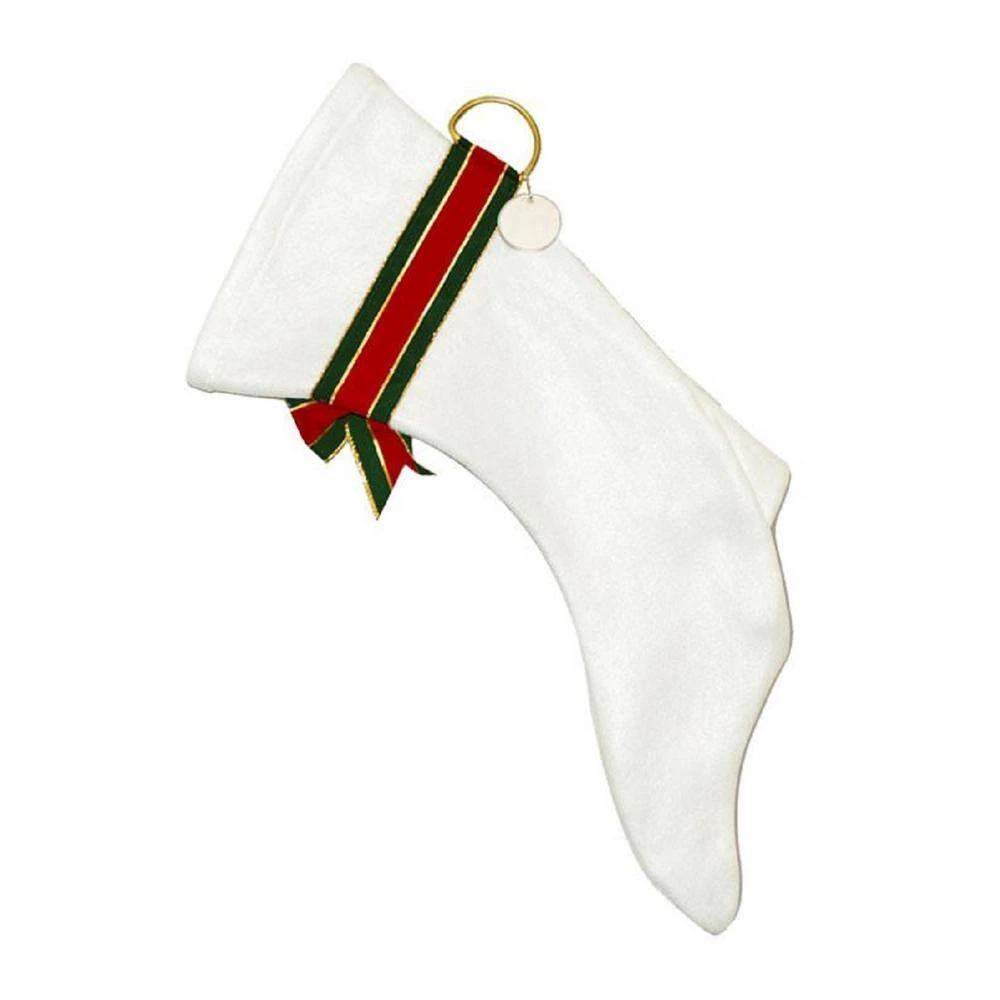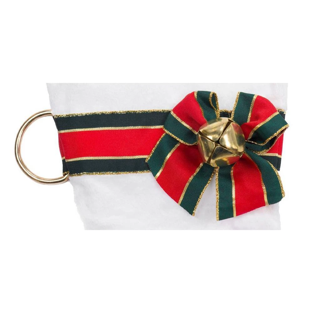 - Furry Christmas stocking features a cute holiday-style collar with bell embellishment