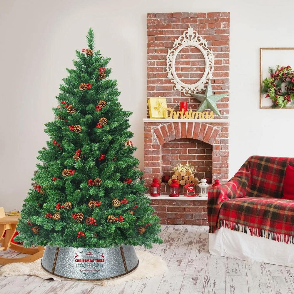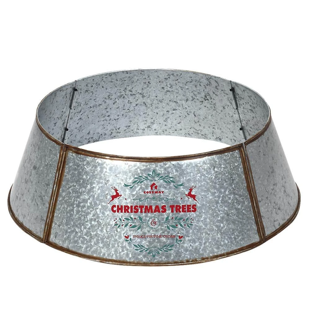 Our Christmas tree collar is the perfect complement for hiding the heavy base and bare trunk. Made of sturdy galvanized steel, this tree ting is antirust and durable for a long lifespan. Silver surface adds the finishing touch to your tree or anything you want to display. The metal tree collar is a whole new twist on the traditional tree skirt, which is not attractive for toddlers or pets. There’s no need for you to clean dust/pet dander, or get rid of the wrinkles. What’s more, you can choose 3 or 4 panels for assembly according to the size of your Christmas tree stand. With the quick release pin connections, you can easily take the collar apart for storage after the holiday season is over.