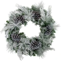 Spruce up your holiday decor with a 24 in. round artificial wreath from Fraser Hill Farm. Whether you deck the halls indoors or outdoors, invest in a quality wreath that will last year after year. This wreath features a mix of realistic pine branches with oversized pine cones scattered throughout. A dusting of flocked snow glistens among the wispy branches and accentuates the pine cones beautifully. The arrangement creates a complete look while evoking subtle feelings of Christmas. This wreath is coveted for its delightful arrangement of realistic branches, rustic charm, and festive accents to complete the look. Hang this wreath on your door and greet each guest with holiday cheer that will last from 1 season to the next.