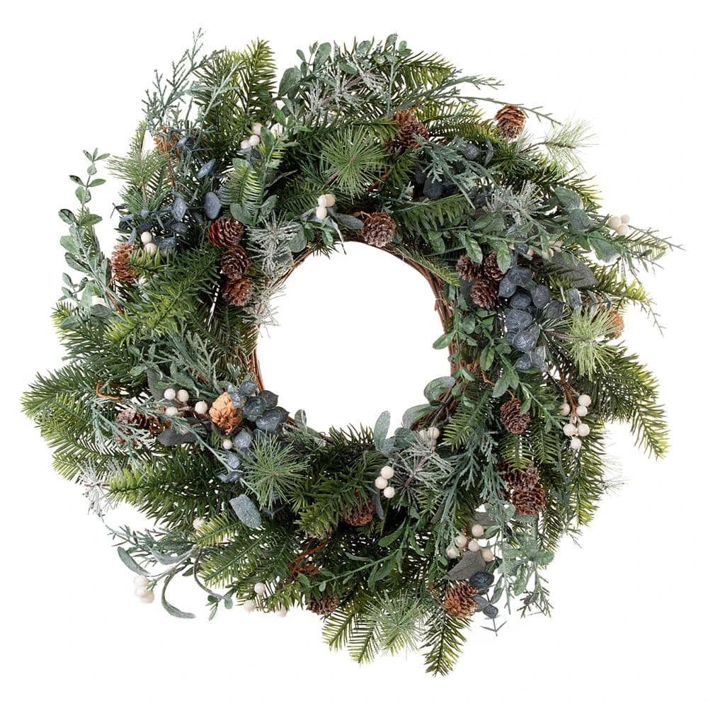A lighted Christmas wreath is a must have if you want to impress your guests during the holidays, and this one of a kind holiday wreath is sure to meet those expectations. The Rustic White Berry wreath is a pre-lit, remote-controlled, battery-operated Christmas Wreath with 30 LED mini lights. 24 in. from tip to tip, the Rustic White Berry xmas wreath features a handcrafted design complete with white berries, pinecones, and realistic greenery to give a modern touch on traditional minimalist wreaths. Our life-like artificial Christmas wreaths for front door are perfect either indoors or outdoors, whether you want to hang it above your fireplace mantle, or display it on your front door. Either way, be sure to complete the look with a matching 9 ft. garland to complement your decorated Christmas wreaths with lights!