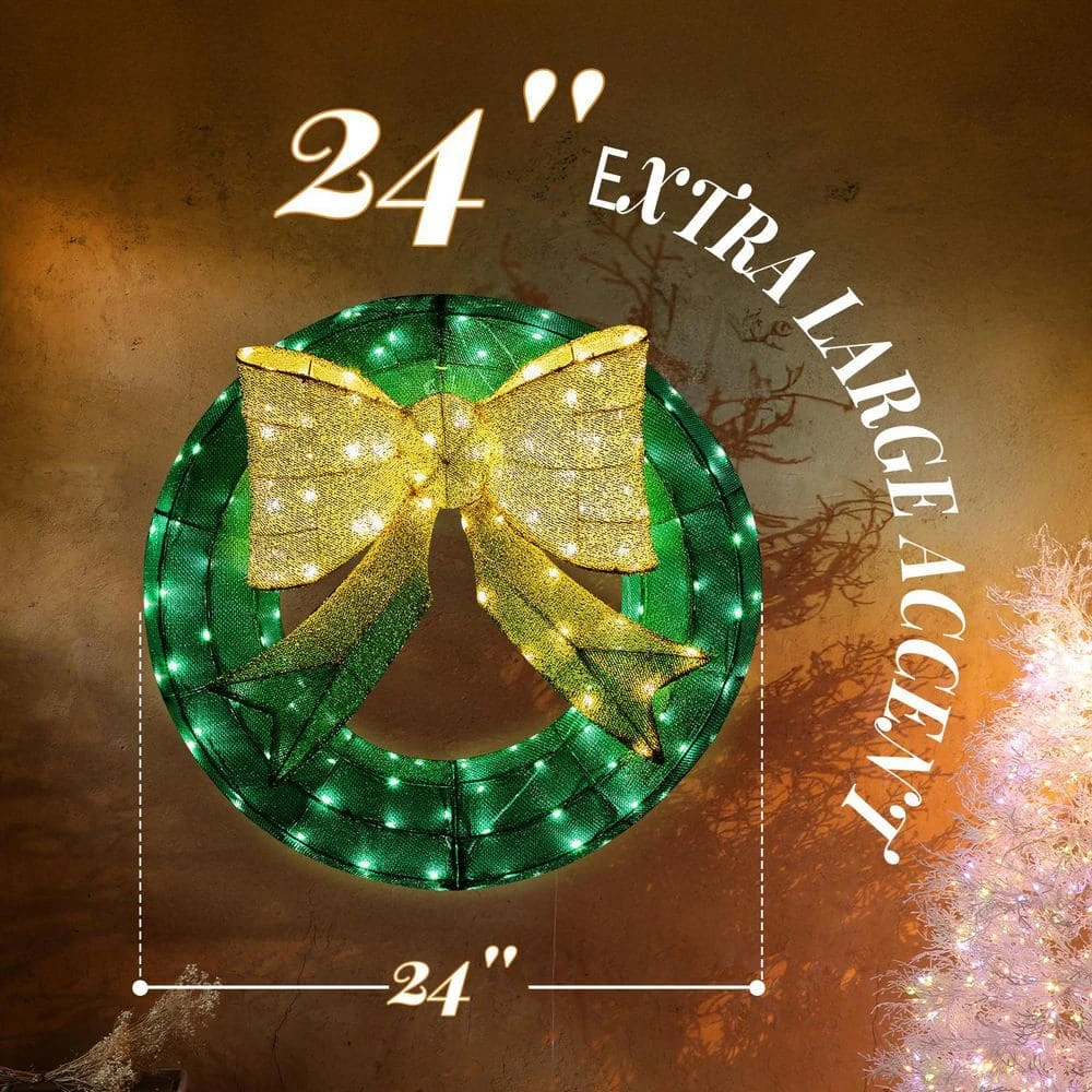 - Holiday Wreath & Golden Bow: Elevate your holiday decor with this eye-catching wreath and elegant golden bow. Its festive design will transforming your gate, garage, or exterior walls into a dazzling Christmas display.