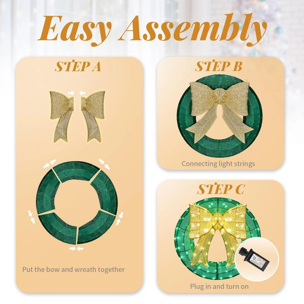 - Easy Assembly: This collapsible Xmas wreath can be set up in minutes, allowing you to enjoy your festive decoration without hassle. The lights are pre-installed, simply connect the wires, plug it in, and enjoy your dazzling holiday display.