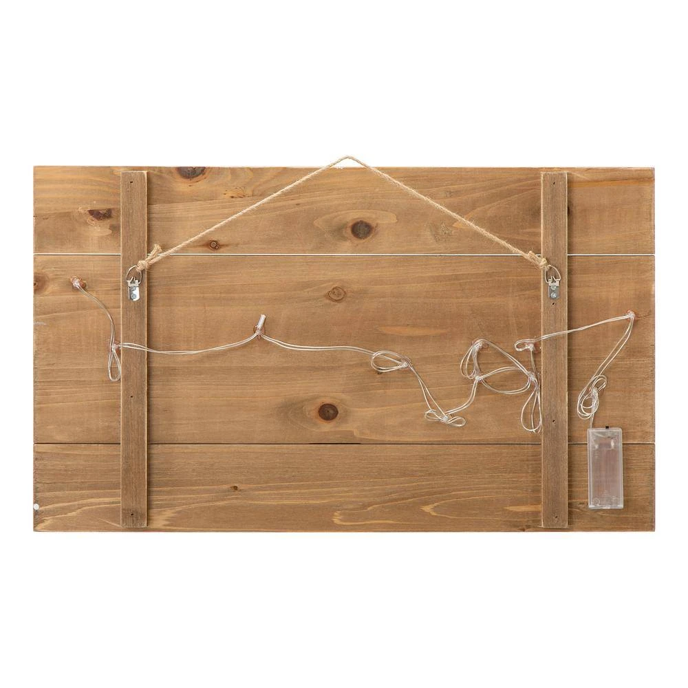 Light up the holidays with this lighted winter scene print. This wooden snowman Wall Decor features Snowmen family surrounded by snow covered evergreens and house. It reads, Season’s Greetings, while 10 Snowflakes sparkle and shine warm white LED lights, brings you with dense festival atmosphere.