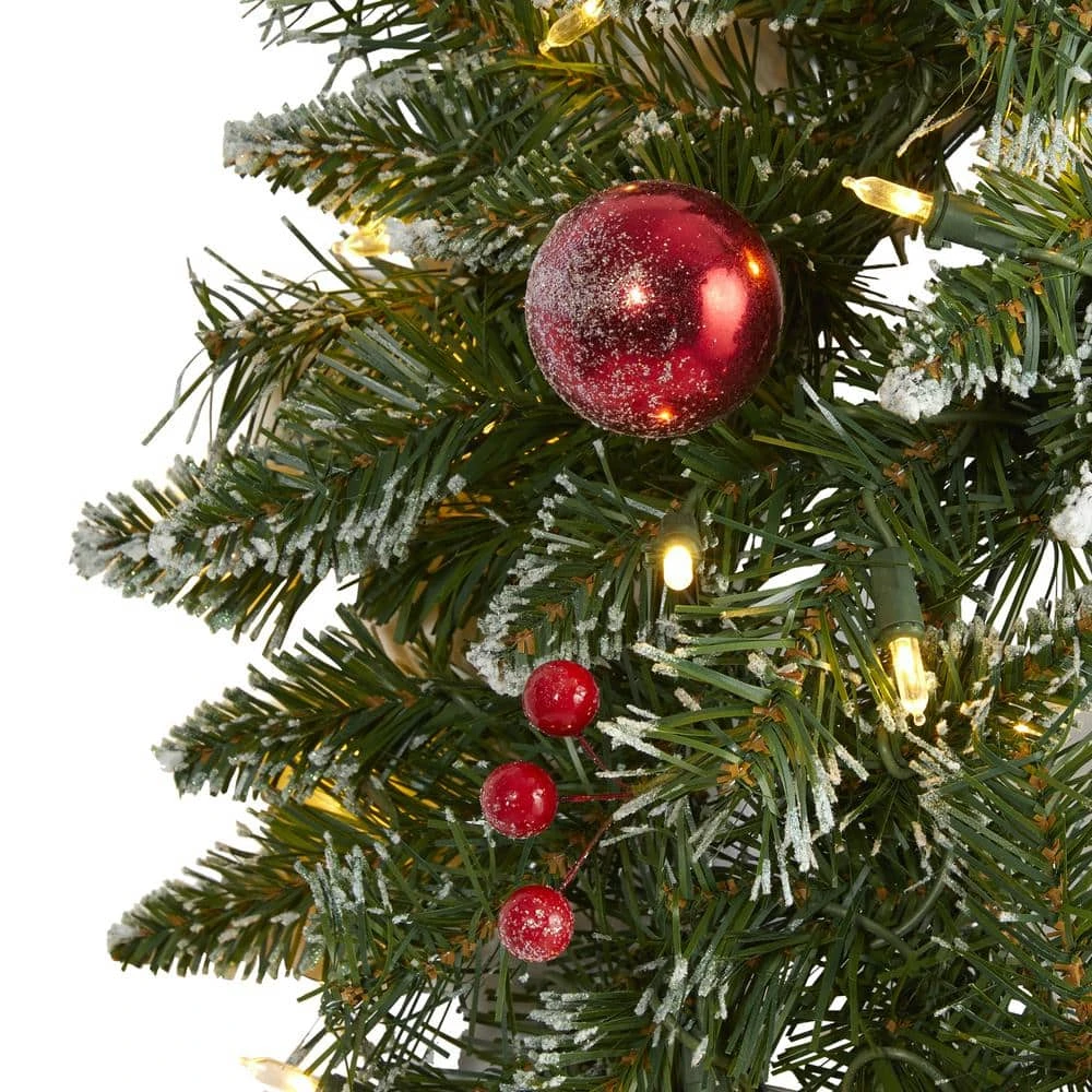 Light up your favorite seasonal accents while adding serious curb-side appeal with this artificial Christmas wreath intricately designed from realistic looking foliage in a palette of seasonal evergreens and accented throughout with faux holly berries and decorative ornaments to evoke a joyous, holiday spirit. Arriving pre-strung with 50 clear LED lights to effortlessly illuminate either a wall or door, this 24 ft. (in circumference) decorative wreath makes for an inviting accent and will undoubtedly transform any entrance all throughout the holiday season. Silk plants are manufactured using synthetic materials, such as polyester material or plastic, and are well designed and constructed to be life-like in appearance. This item will need to be re-shaped when removed from the secure box to allow it to reach its fullest size. Your artificial plant will look beautiful for years to come; simply wipe clean with a soft dry cloth when needed.