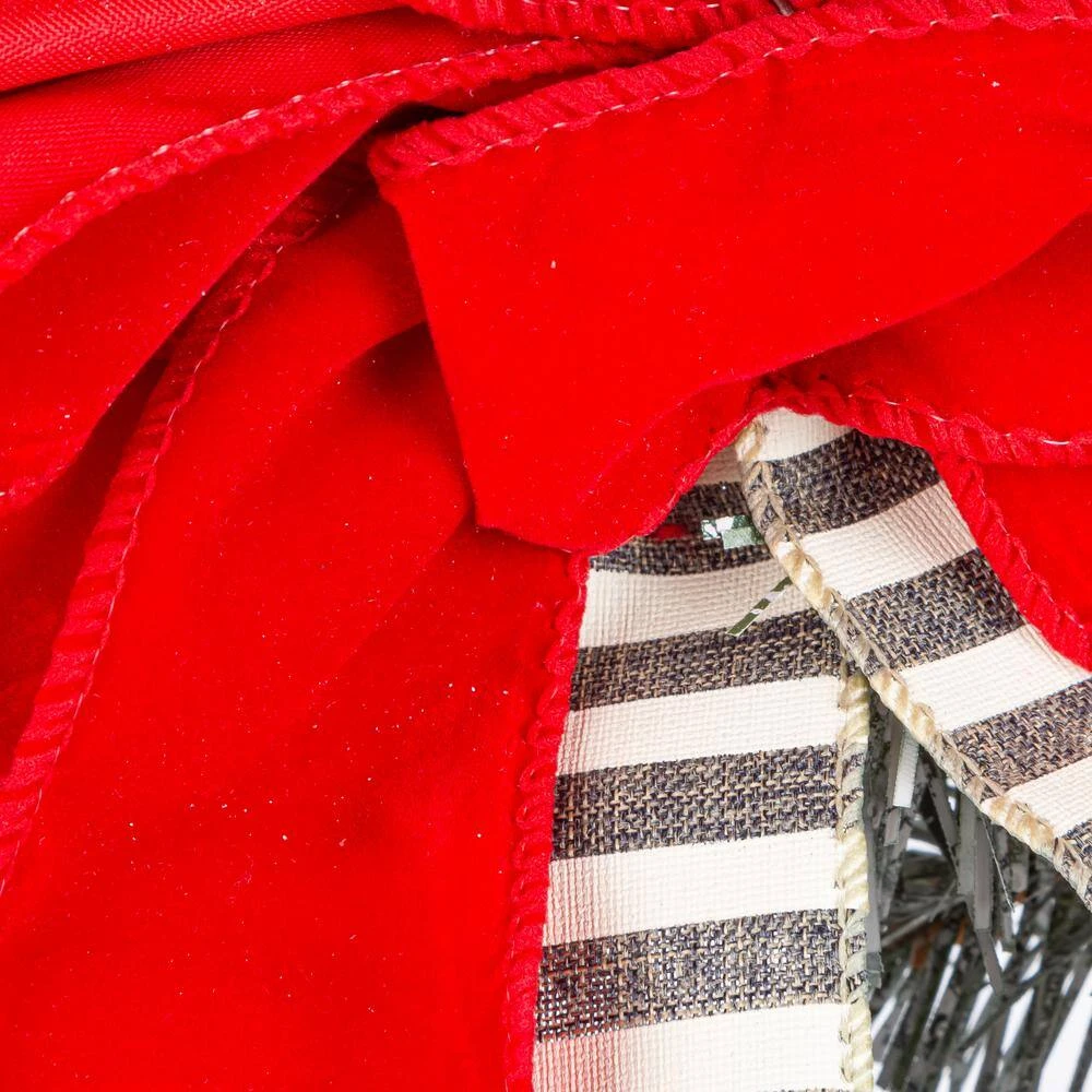 - Adorned with a stripped and red bow