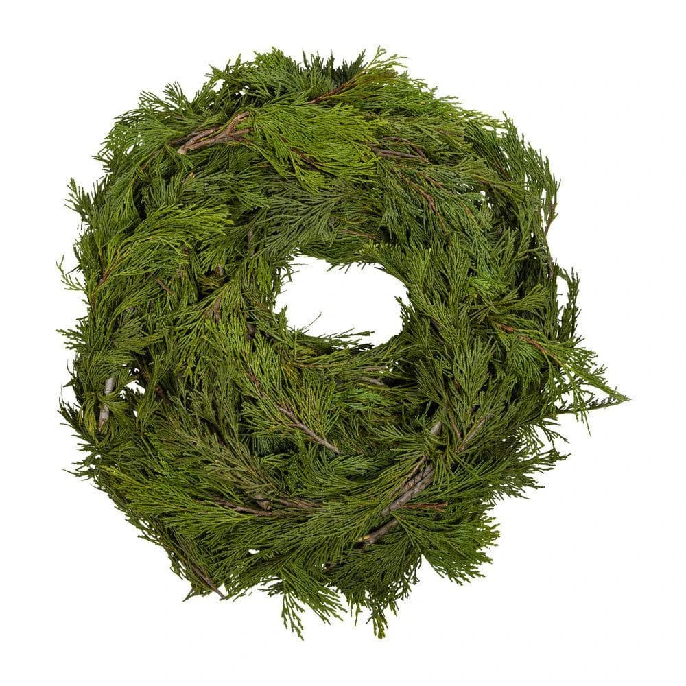 Bring the fragrance of the holidays into your home with this 25 ft. fresh greens cedar garland from METROLINA GREENHOUSES. The 25 ft. L allows you to customize for any location. Perfect for banisters, mantles and front doors, this garland can be cut to fit any application. Spritz your garland every few days to keep the branches from browning. Open your package outside and shake the garland to remove any loose needles. Keep away from high heat sources for long periods of time as this can dry out the garland and cause the needles to turn brown. Add lights for that cozy holiday glow.