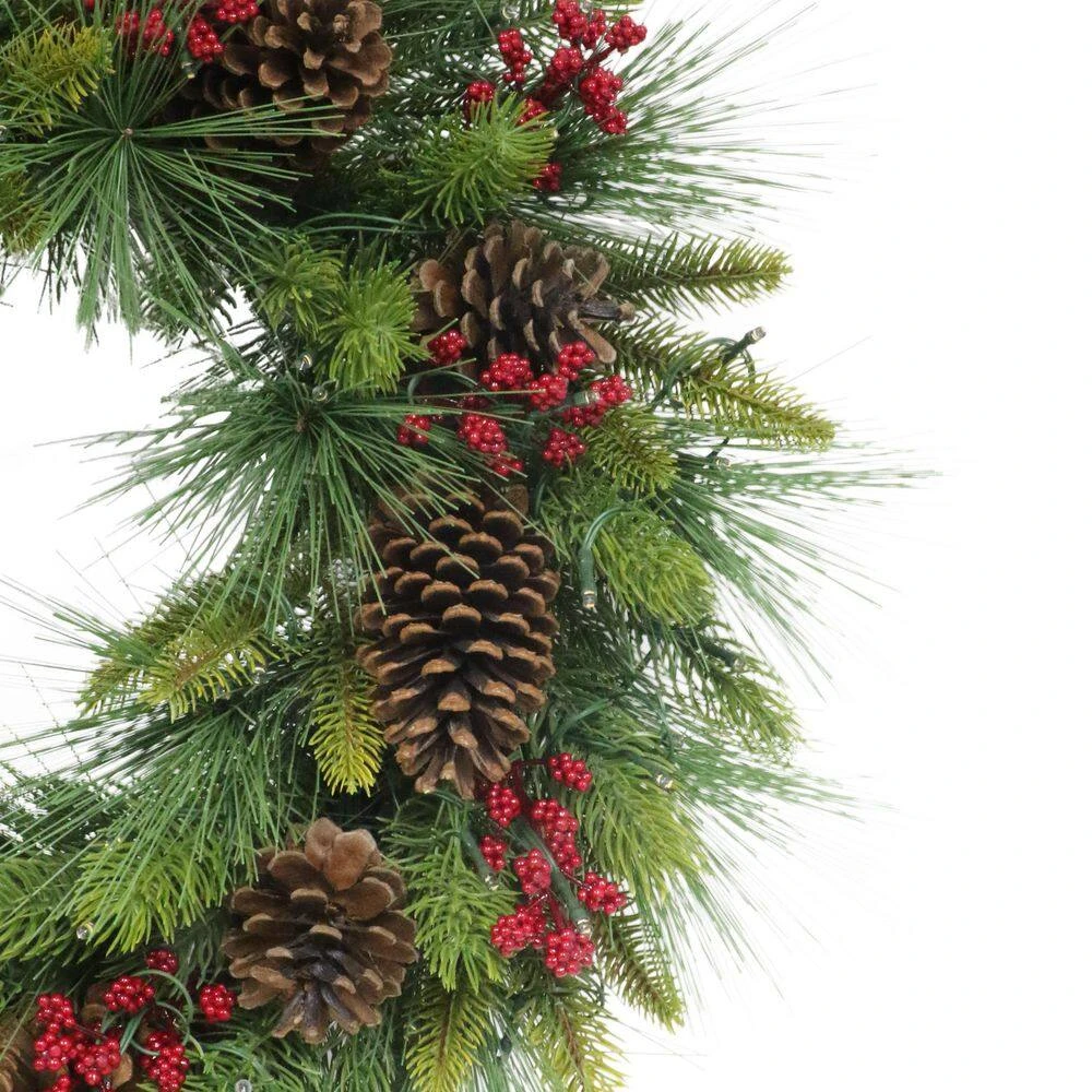 Transform your home into a winter wonderland with the Puleo International 26 in. Pre-Lit Artificial Adorned Christmas Wreath. Draped in soft, lifelike greenery, this elegant wreath brings the spirit of the season to life. The 80 LED warm white lights cast a gentle, enchanting glow, turning any space into a cozy, festive haven. Perfect for placing anywhere inside or outside your home, it adds just the right touch of warmth and charm. No need to worry about upkeep-this pre-lit, artificial beauty will shine season after season, keeping your home adorned in holiday magic. Let it become the centerpiece of your seasonal decor and create memories that will last a lifetime.