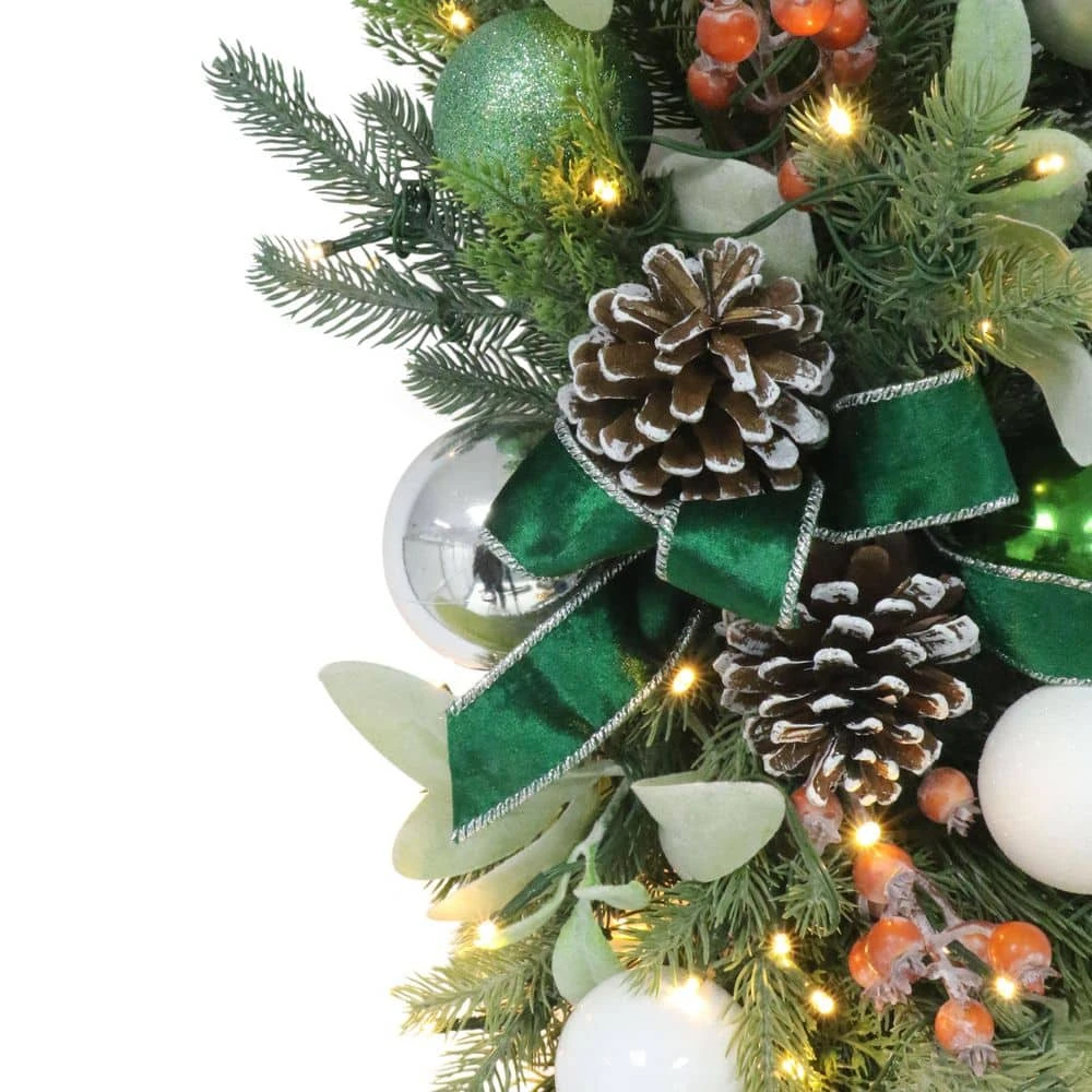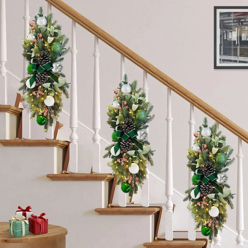- Adorned design: the swag is decorated with various ornaments and embellishments, adding an extra festive touch