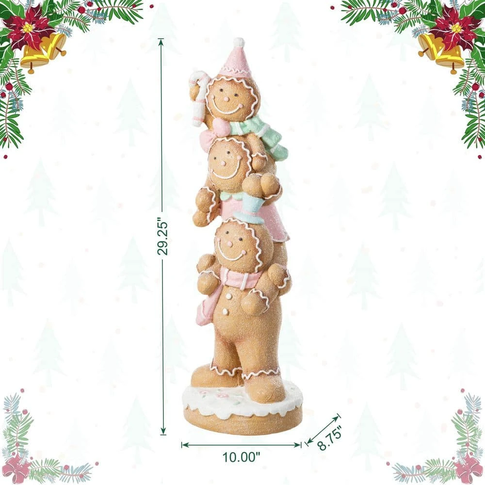 The 29.25 in. H Christmas Macaron Pink Resin Porch Decor is a delightful and eye-catching holiday decoration. It features a stack of 3 cheerful gingerbread men, each adorned with pink, blue and white accents, creating a playful and festive display. This charming decor adds a touch of whimsy to any porch or entryway during the Christmas season.