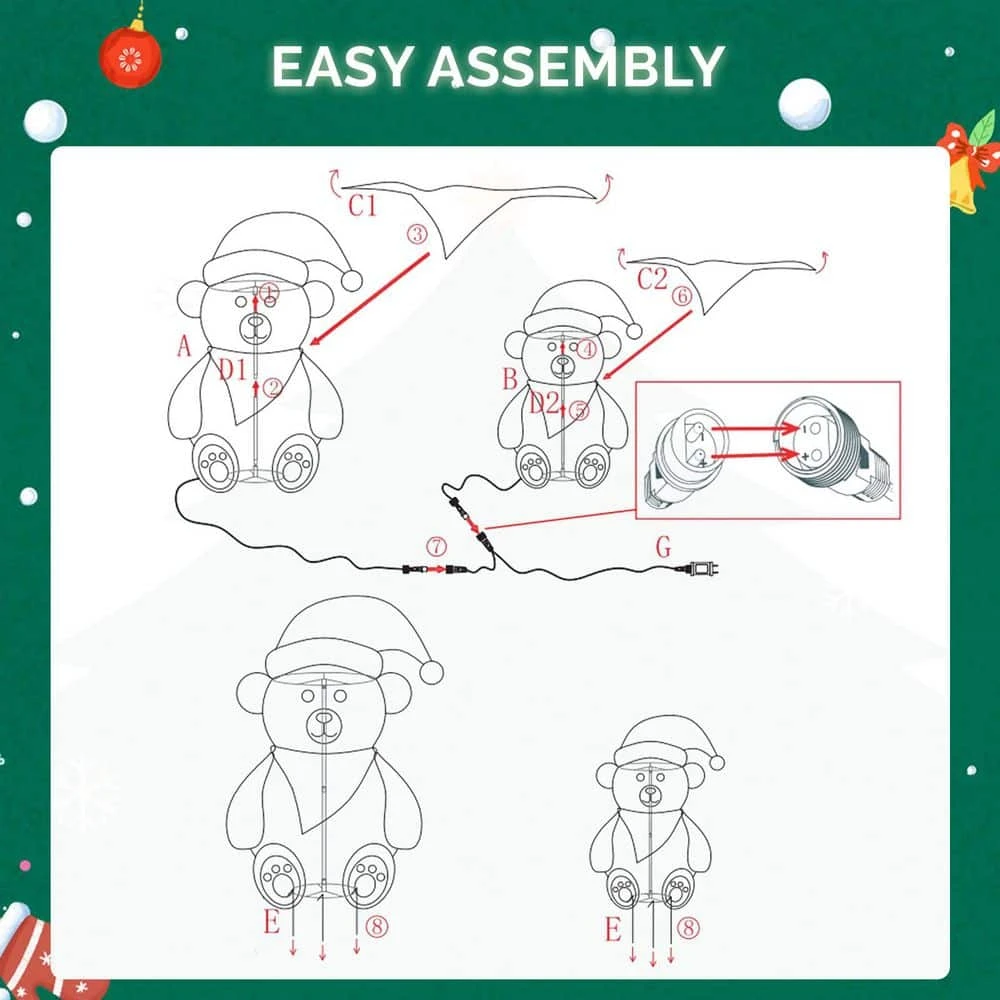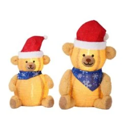 - Adorable Christmas Decoration: Featuring two adorable plush bears wearing Xmas hats and blue scarves, this decoration adds a playful and festive touch to any space.