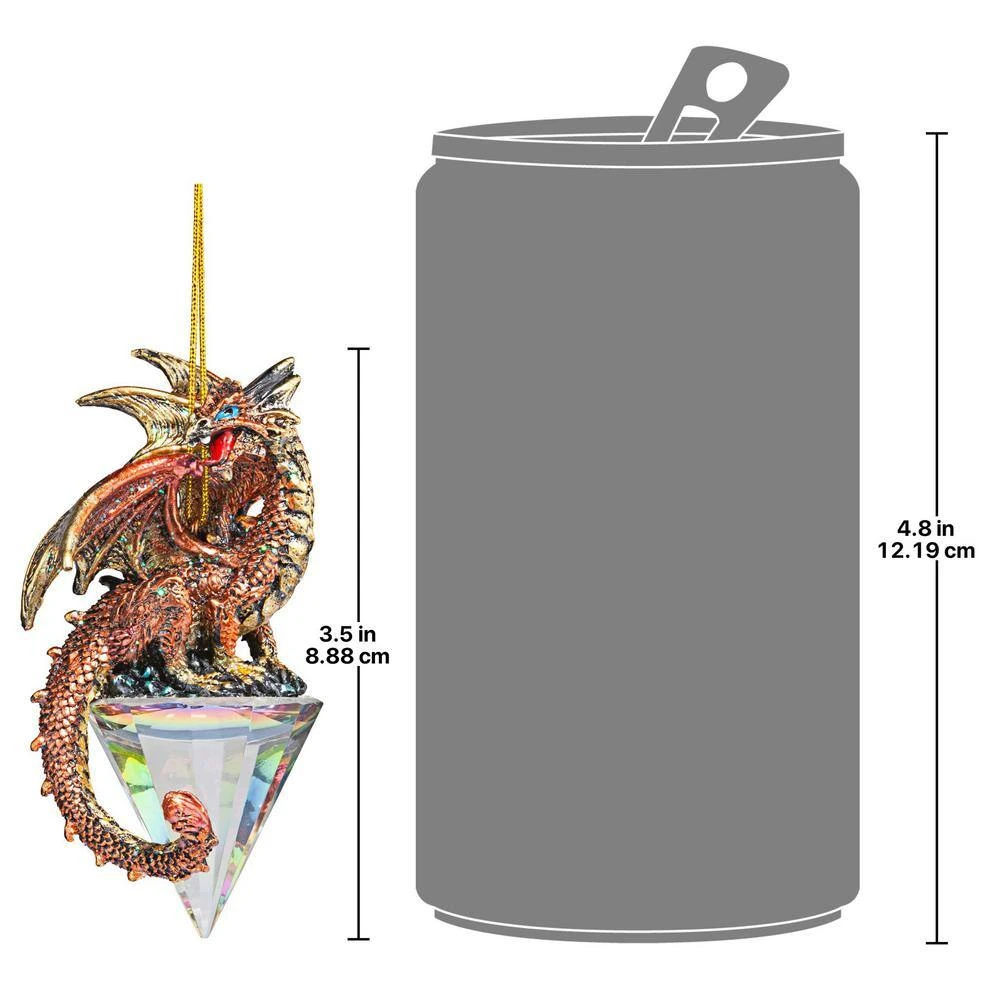 Celebrating 25-years of exclusive designs for Design Toscano, artist Liam Manchester decided that his diamond anniversary called for a Diamond Dragon so our limited-edition holiday dragon ornament arrives on his own larger-than-life, crystal glass diamond. Expertly hand painted in Medieval metallic tones, the Gothic dragon demon shines in festive colors, featuring a golden string at the top for easy hanging. Available only from Design Toscano, this unique gargoyle collectible makes a standout Christmas tree decoration, an exotic stocking stuffer, a charming package tie-on or a creative addition to your year-round dragon collection. 2 in. W x 2 in. D x 3-1/2 in. H.