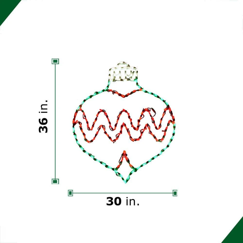 - Oval drop ornament light measures 36 in. tall x 30 in. W