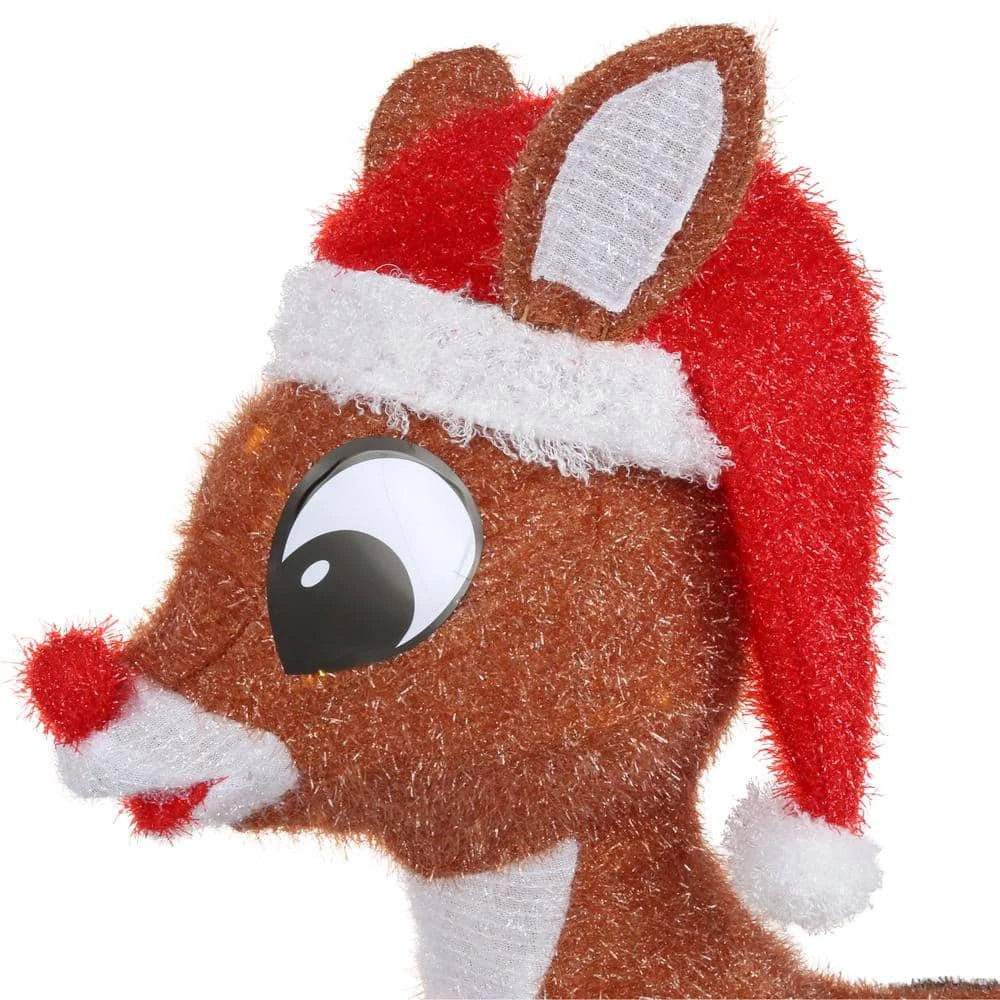 Featuring a weather-resistant fabric and heavy-duty frame, is this 36 in. 3D LED Rudolph with Santa Hat. It will add a festive glow to your holiday decor lineup. The LED lights use less electricity for an energy-efficient holiday flow. The fabric of Rudolph is soft faux and withstands weather elements.
