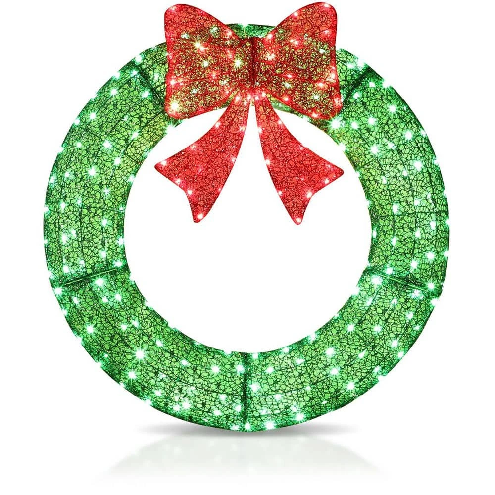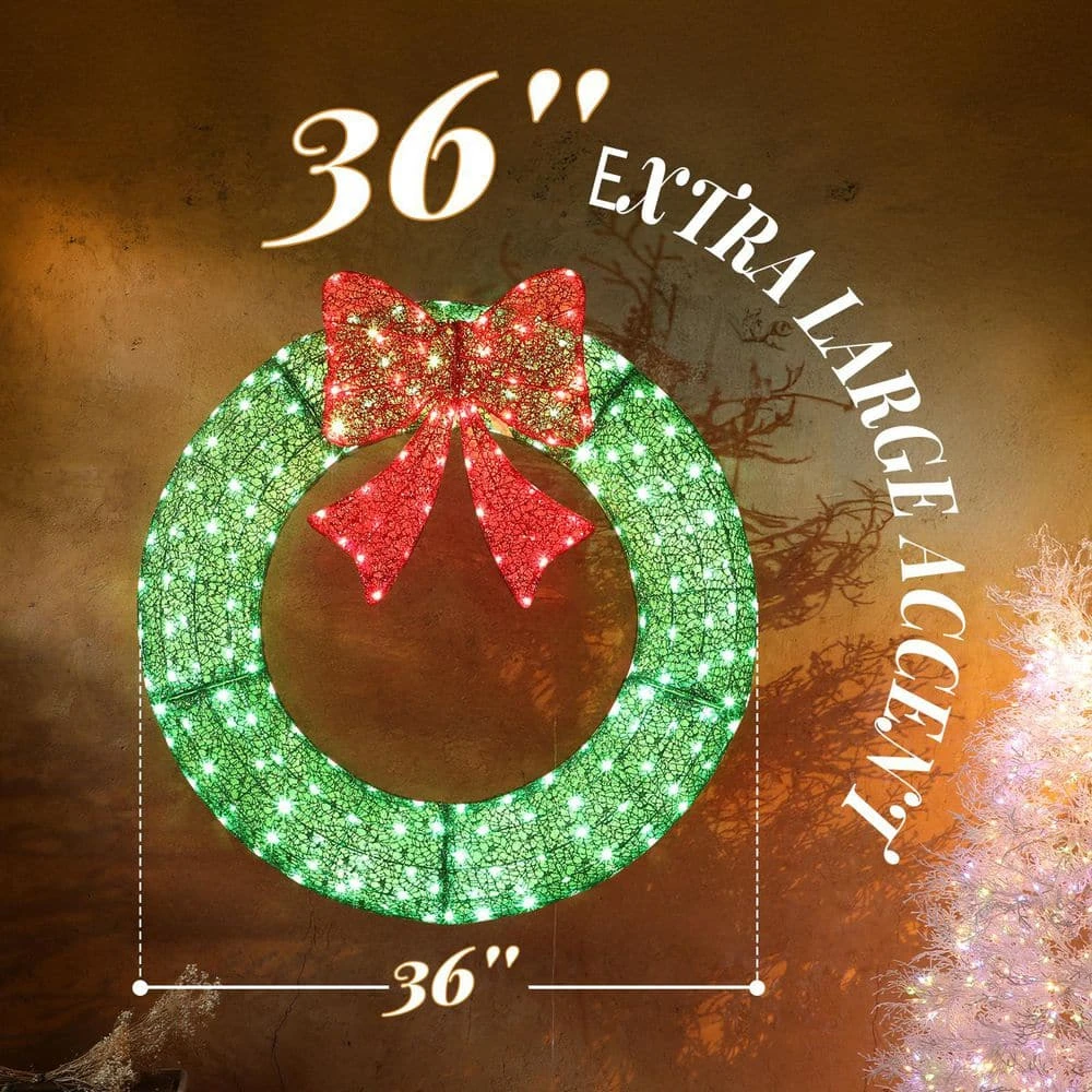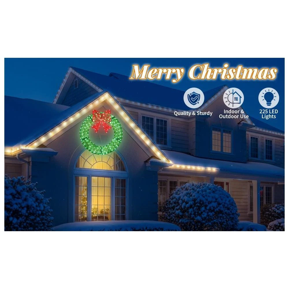- Holiday Wreath & Bow: Elevate your holiday decor with this eye-catching wreath and elegant bow. Its festive design will transforming your gate, garage, or exterior walls into a dazzling Christmas display.