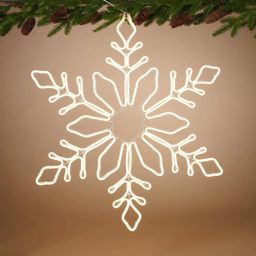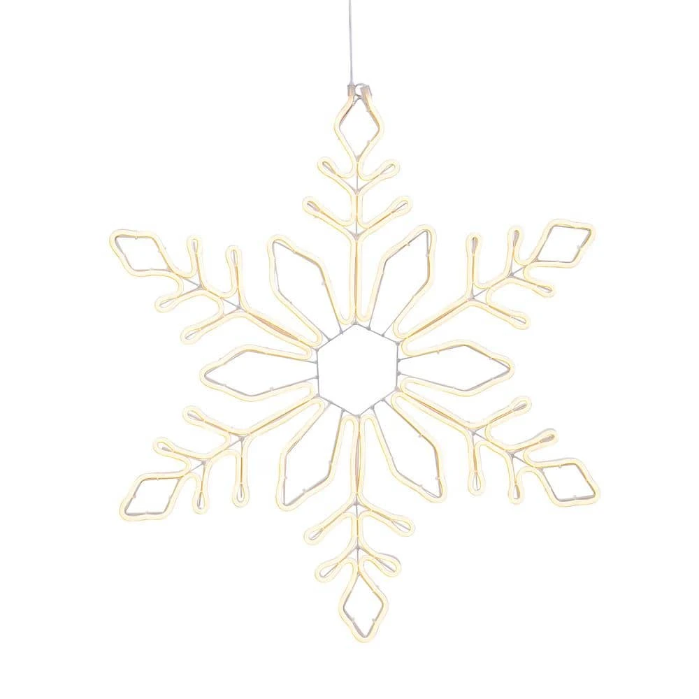Let it snow. Tis the season to shine. Adorn your home with an artistically designed, electric LED neon snowflake. This stylized, gorgeous 30.7 in. high snowflake emits a cool white glow. It comes with a UL-Listed outdoor electric adaptor for indoor or covered outdoor use. The possibilities for decorating with this snowflake are truly endless, perfect for hanging from trees, porches, walls and ceilings, glowing in windows, and more. You will want to have many of these versatile snowflakes as a must have for the holidays or any-day throughout the winter-months.