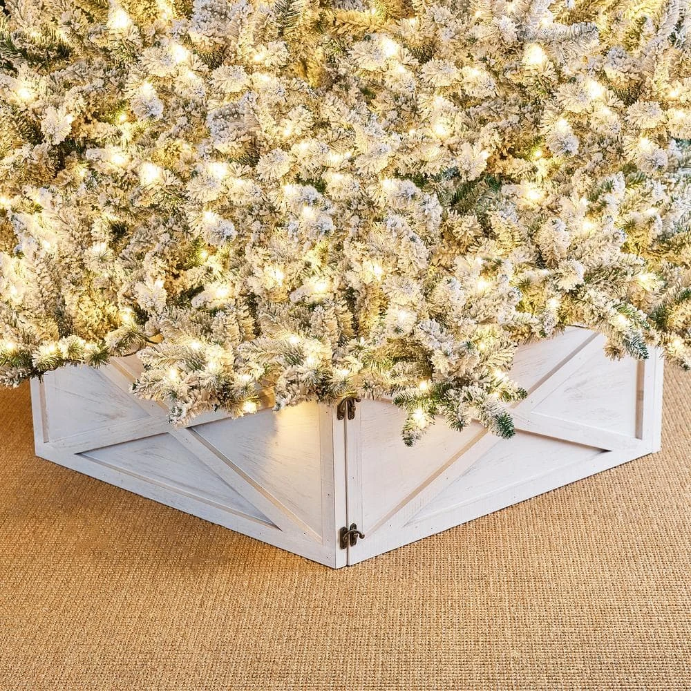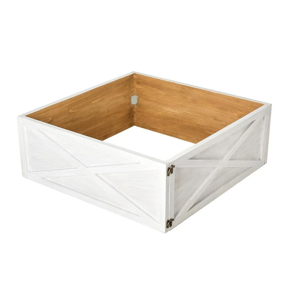 Our handcrafted tree box collars add a rustic, elegant charm to any home or business. The tree boxes not only add beauty and hide the undesirable parts of your tree, but they also prevent kids and pets from getting into the bottom side of your tree. They are stained in natural wood finish.