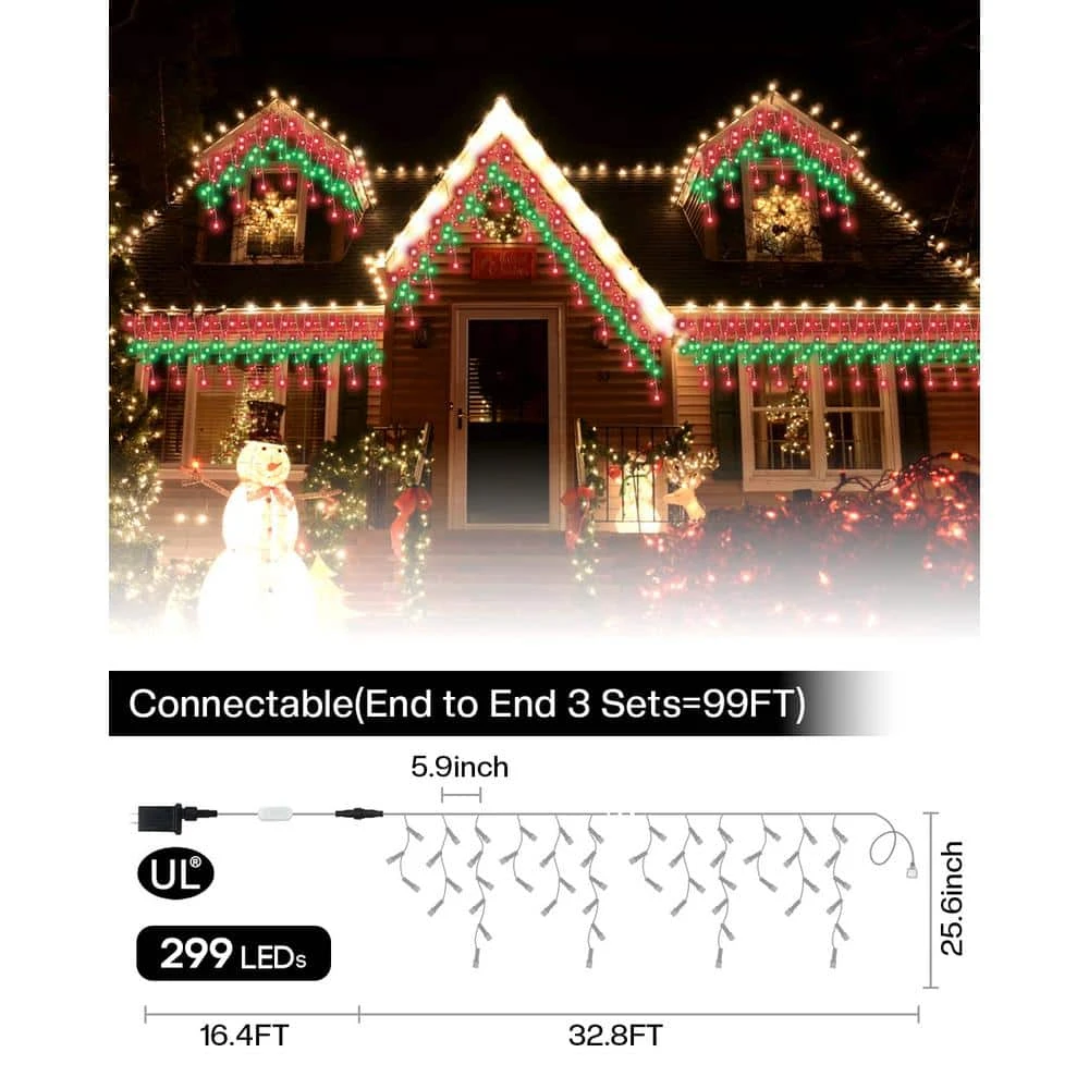 - [DIY Lighting Experience]- Customize your holiday display with our smart LED icicle lights! Enjoy a variety of colors and scene modes to create a unique ambiance that will impress your neighbors and elevate your festive spirit.