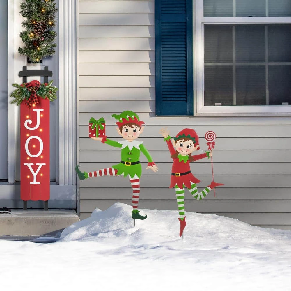 The Set of 2 Christmas Metal Dancing Elf Yard Stake is the perfect choice for your holiday décor. Crafted from high-quality metal, each elf is meticulously handcrafted to showcase lively dancing poses. Their charming appearance uplifts the mood and adds a splash of brightness to the festive ambiance.