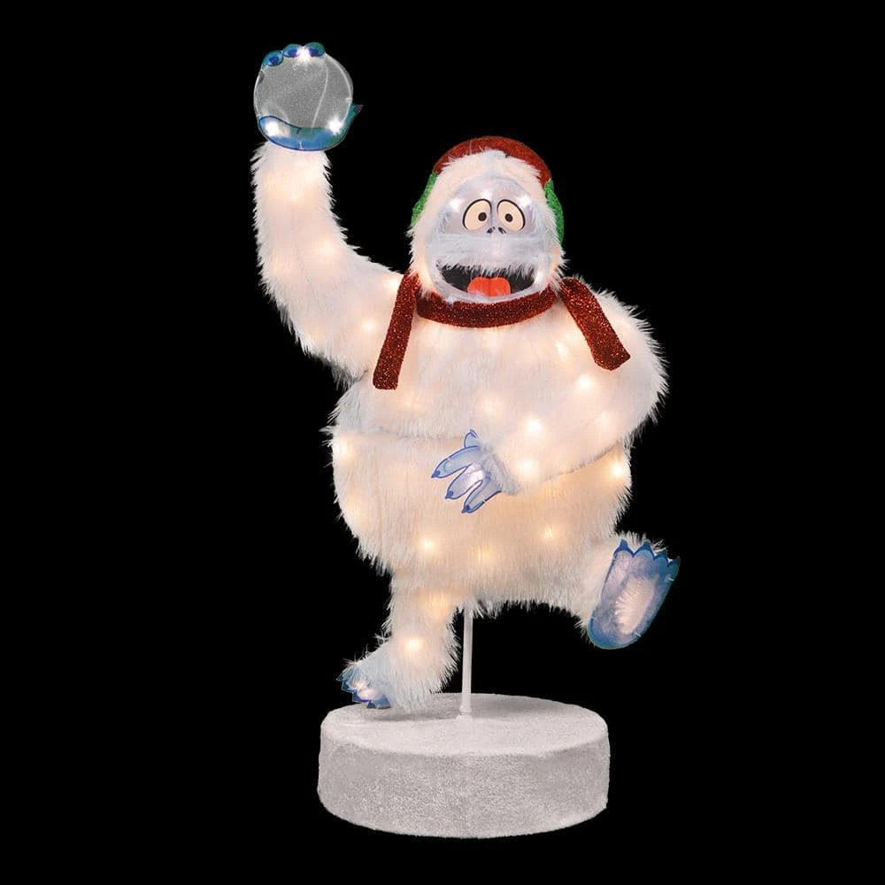 A great addition or gift for fans of the beloved 1964 animated Christmas special. Loveable Bumble is getting ready to throw a snowball and is on a base that swivels, perfect for decorating your home in Christmas joy. Includes ground stakes and extra bulbs. Looks great day and night.