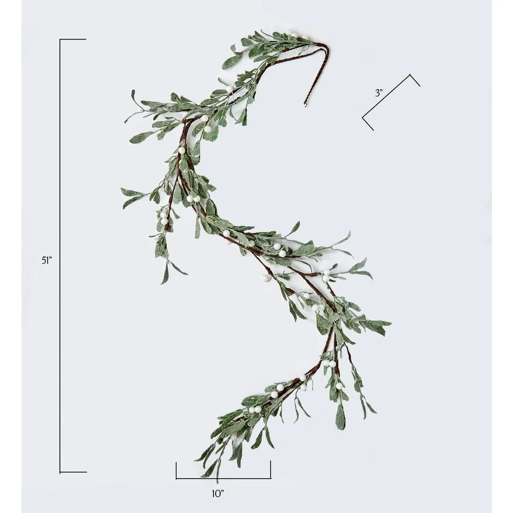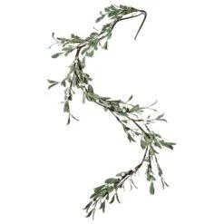 Get into the holiday mood with this beautiful mistletoe garland. It is on a bendable vine and coated with festive glitter. It will look great on a mantel or stairway.
