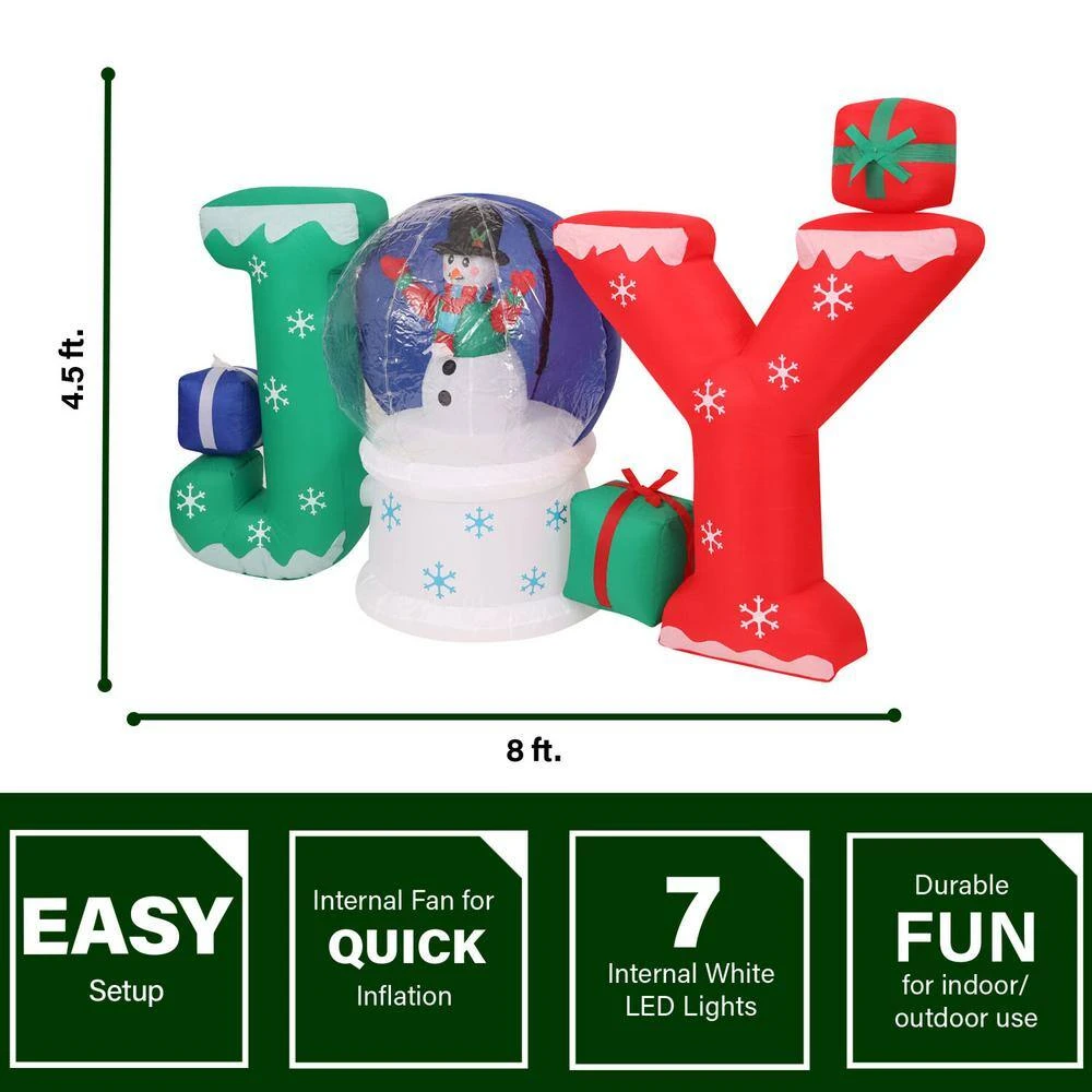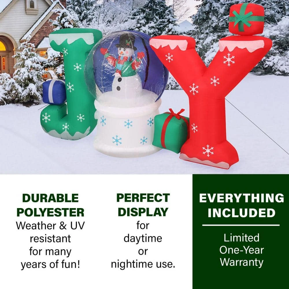 - Pre-lit: brighten your lawn, garden, yard or porch with ‘joy’ Christmas snowglobe inflatable that lights up white