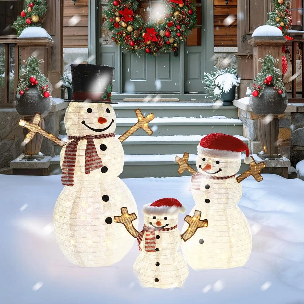 - 【3D Design with 270 LEDs】The 3D design makes snowman family outdoor Christmas decorations adorable and lifelike. 270 warm white LEDs provide illumination, adding the joy of Christmas.