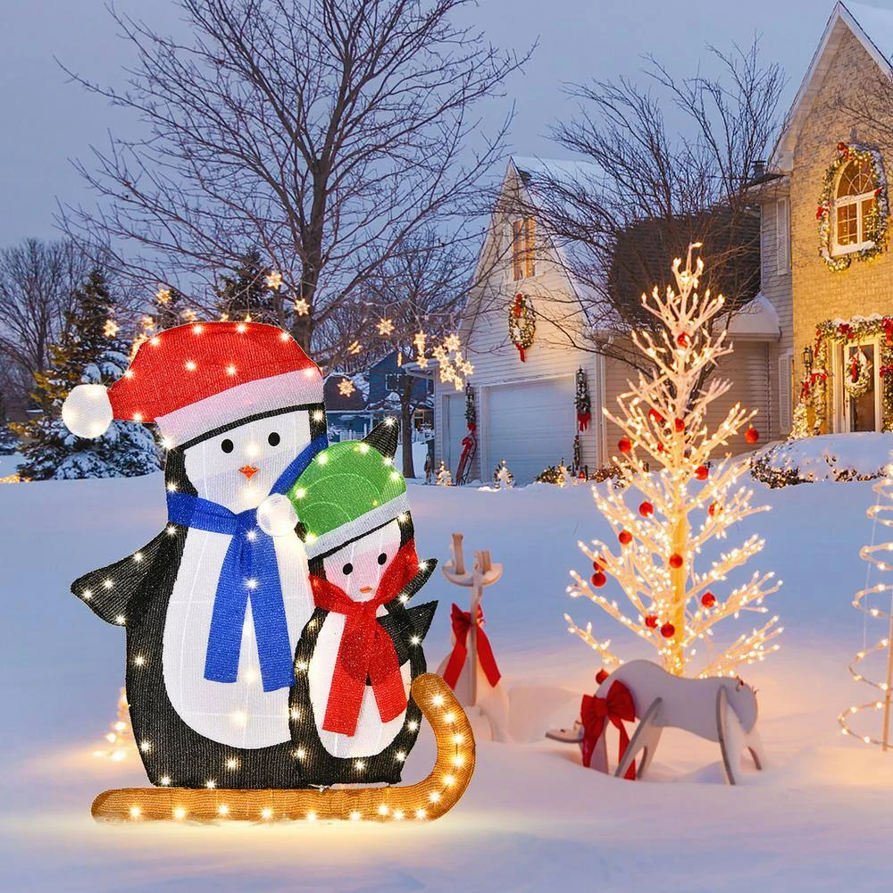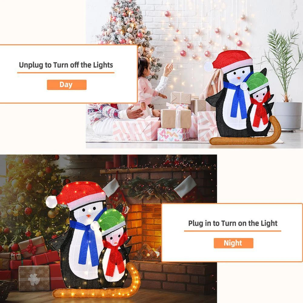 - Makes an eye-catching addition no matter day or night Brings a festive atmosphere with the image of penguins