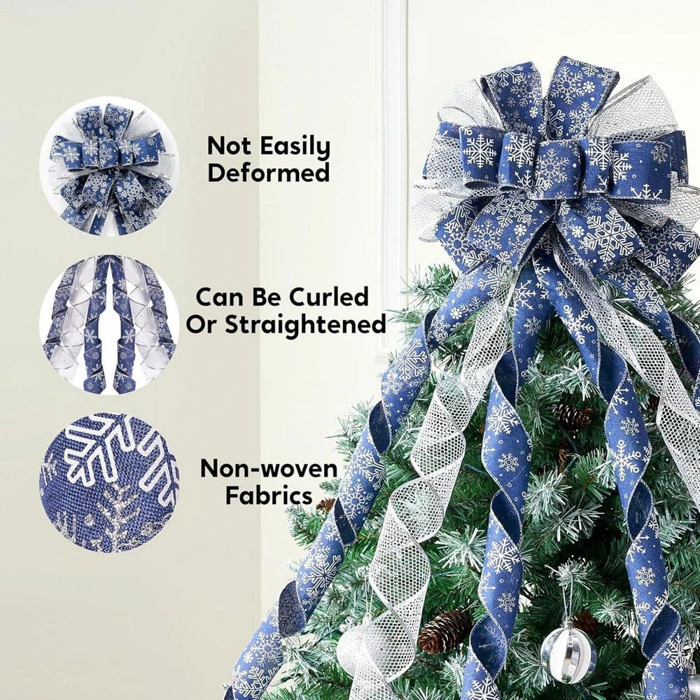Create a stunning tree topper with the 45 Inch Christmas Tree Topper Bow by Joyfy. This gift bow features a green, red, and white ribbon design, perfect for Christmas tree toppers or holiday decorations. Its large size and vibrant colors make it a standout piece for your holiday decor. Easy to set up, this tree topper bow adds a festive touch to your Christmas decorations.