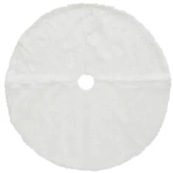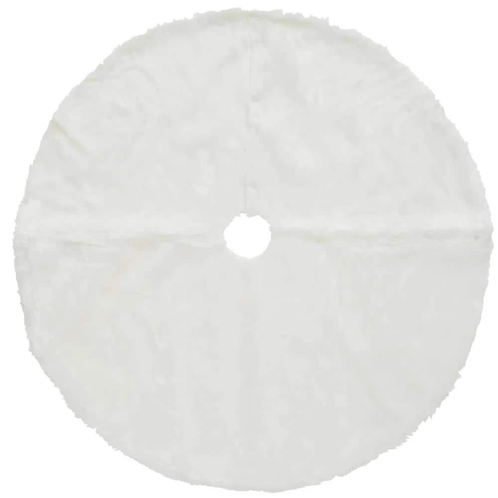 Add the finishing touch by surrounding the base of your Christmas centerpiece with this bright white tree skirt. Made of 100% polyester, this skirt features a soft and appealing feel provided by its faux fur fabric design. The split seam opening allows for easy placement with Velcro tabs included to close and secure the seam.