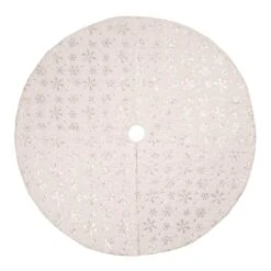 Treat your tree right with the final touch in a soft faux fur tree skirt. Adds the perfect layer for piling the presents on and protect floors. The crisp white faux fur creates the look of freshly fallen snow to give a lovely festive style. Warm fuzzy velvet provides an eye-catching base for the applique and embroidered designs.