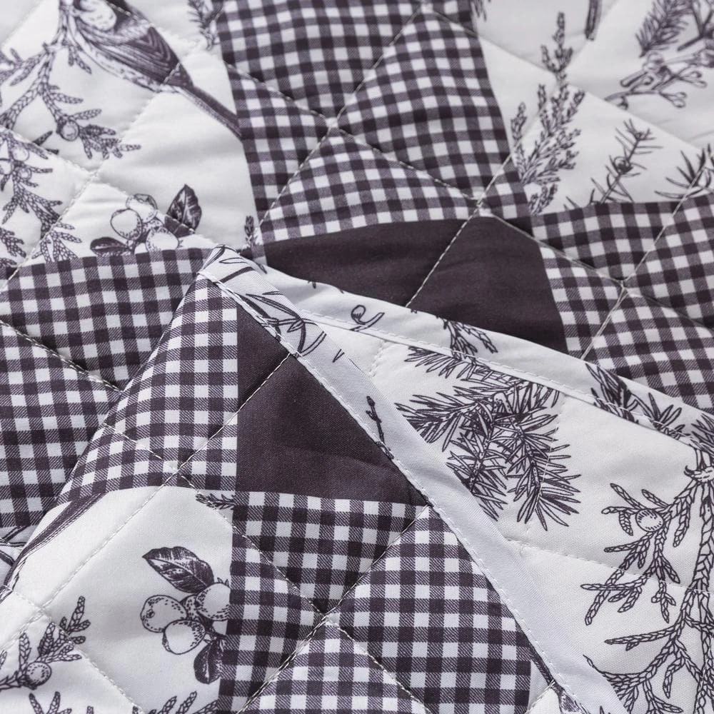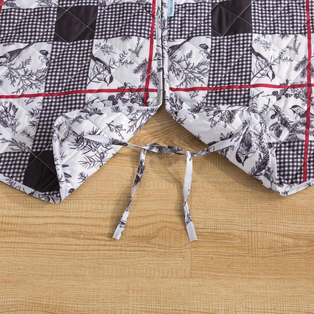 The COUNTRY LIVING Faith Tree Skirt will add class to any room with a traditional chickadee windowpane toile print that reverses to a country floral. The classic ivory, black and red colors are easy to decorate your room for the holidays. Both sides feature a soft brushed microfiber fabric with diamond quilt stitching and are finished with a matching binding for a clean look. The fully reversible tree skirt features a coordinating allover print to provide versatility in your styling. Can coordinate back to the Faith Quilt Set and Stocking (sold separately).