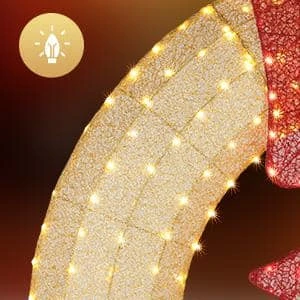 48 In. Gold Pre-Lit LED Outdoor Artificial Christmas Wreath With 315 Lights And Red Bow
