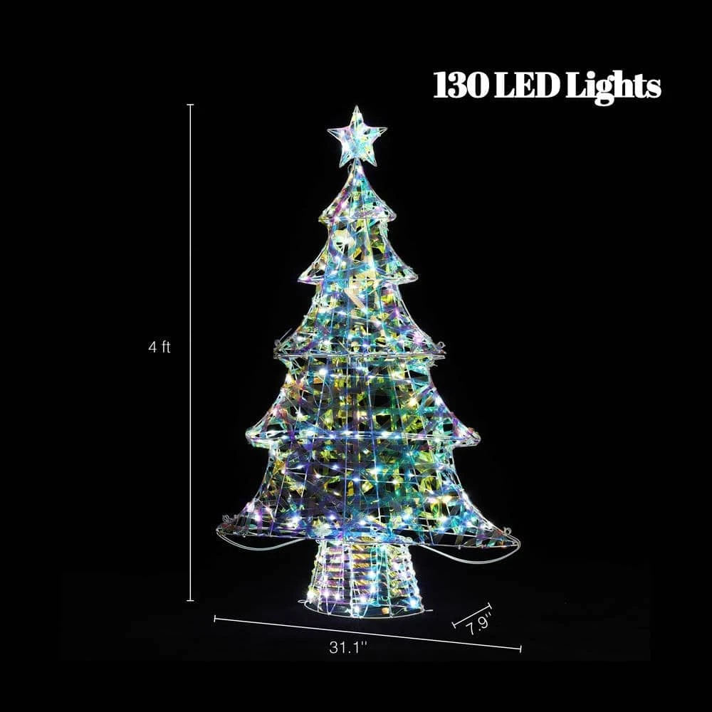 - Festive Christmas tree is adorned with 130 bright white LED lights, creating a beautiful and colorful glow when paired with vibrant ribbons